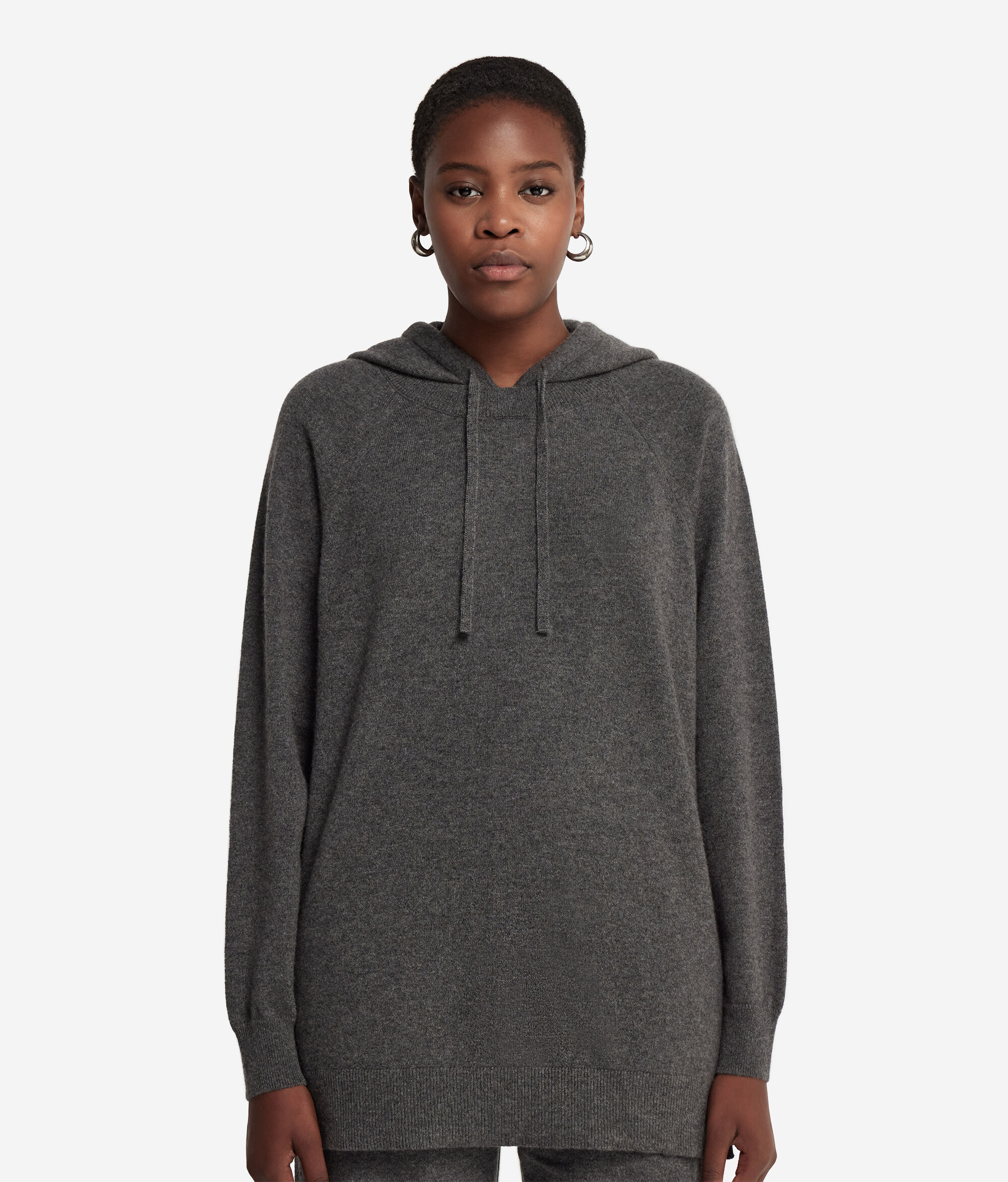 Let yourself be wrapped up in this soft sweatshirt entirely created in precious Ultrasoft Cashmere. Complete with hood with adjustable drawstring, it is also enriched by several ribbed knit finishes on the round neck, cuffs and hem. The design is further enriched by small side slits, a refined touch that gives the garment movement. Its loose wearability and raglan sleeves provide a relaxed and natural fit that comes up to a contemporary style.