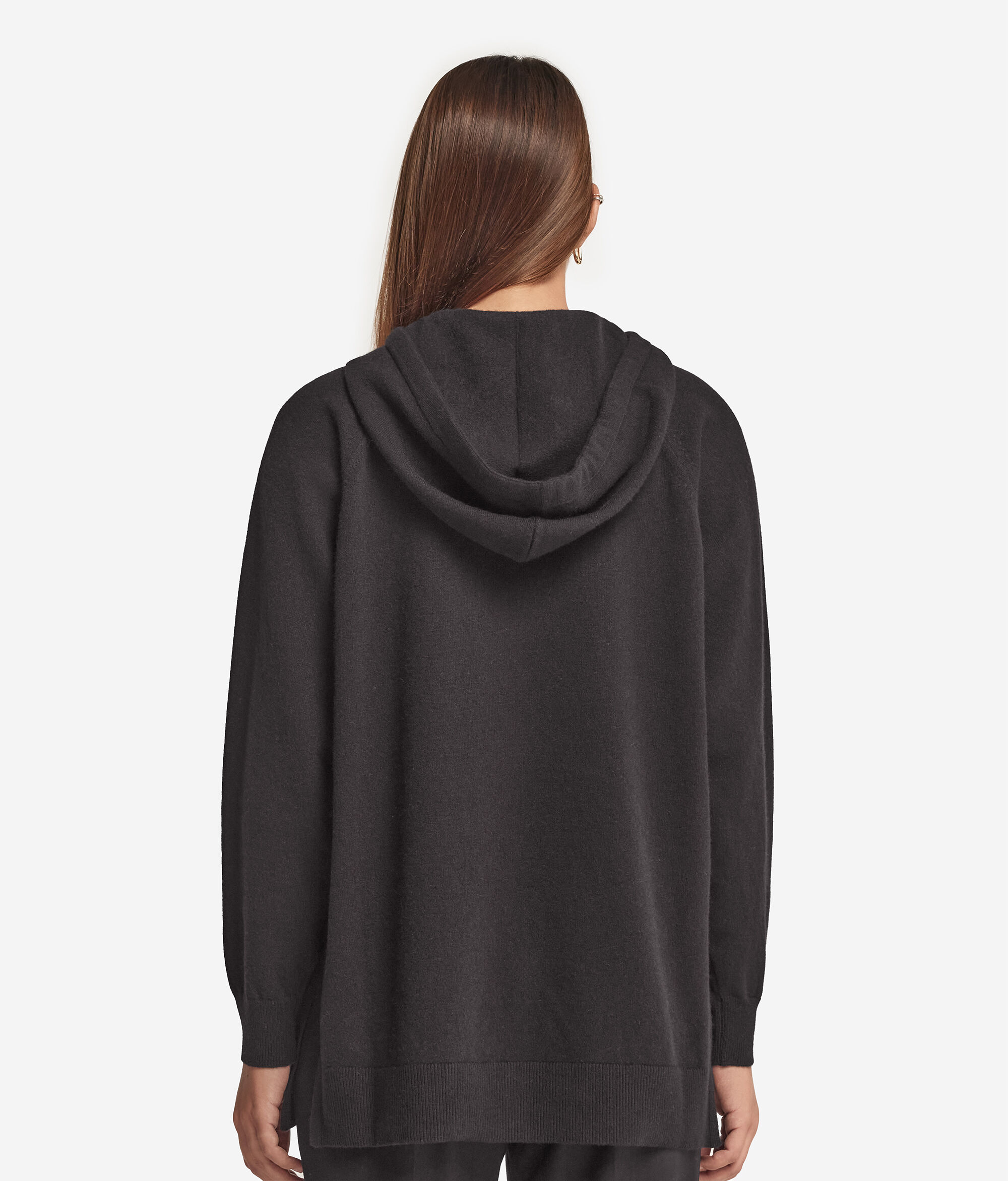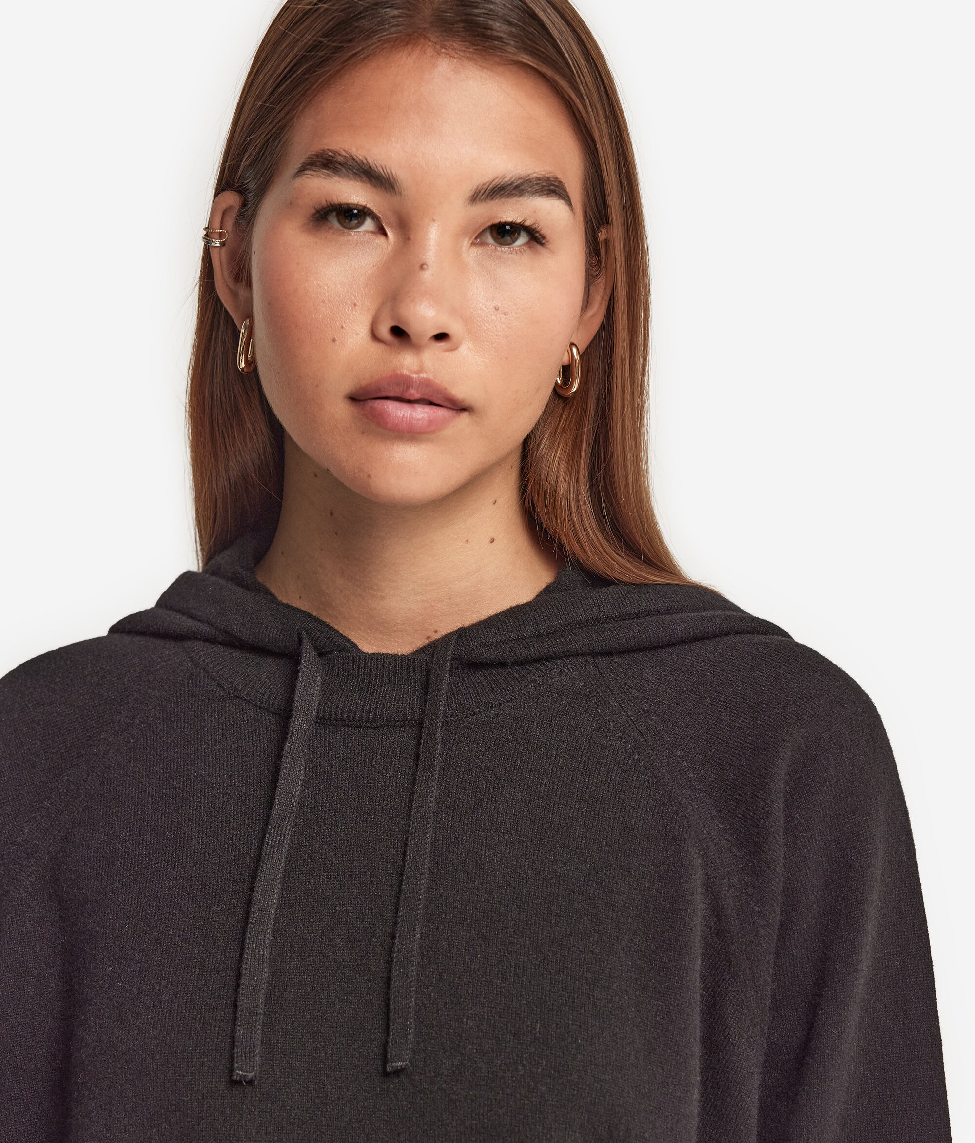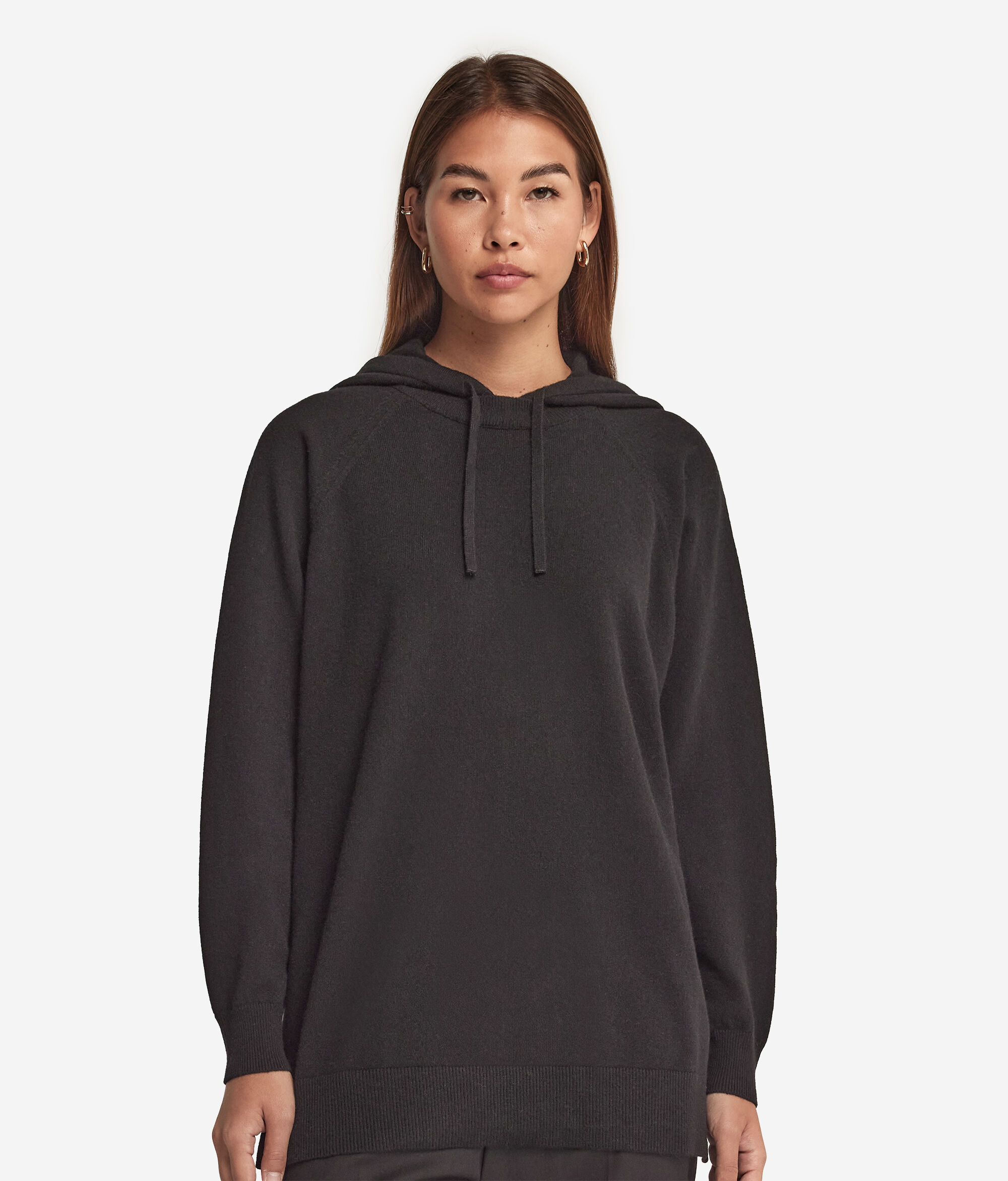 Let yourself be wrapped up in this soft sweatshirt entirely created in precious Ultrasoft Cashmere. Complete with hood with adjustable drawstring, it is also enriched by several ribbed knit finishes on the round neck, cuffs and hem. The design is further enriched by small side slits, a refined touch that gives the garment movement. Its loose wearability and raglan sleeves provide a relaxed and natural fit that comes up to a contemporary style.