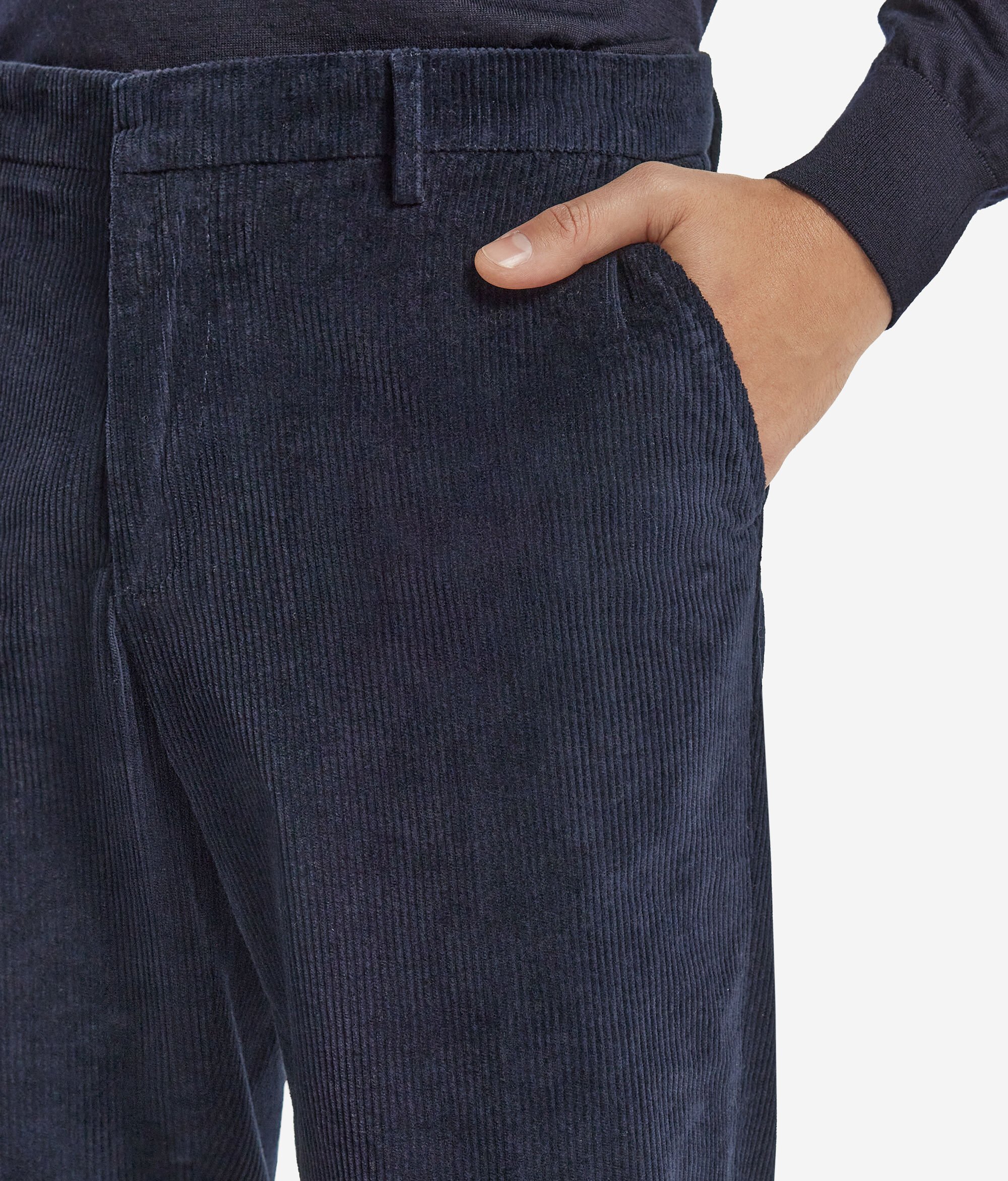 Made from soft, fluid cotton velvet fabric, the minimal style of these trousers is raised to the next level through exquisite workmanship. Elegant in design, they feature convenient pockets and an interior belt with contrasting brand embroidery. They are timeless and chic, with a Regular Fit. We recommend sizing up one to two sizes for the best fit that proves comfortable and natural.
