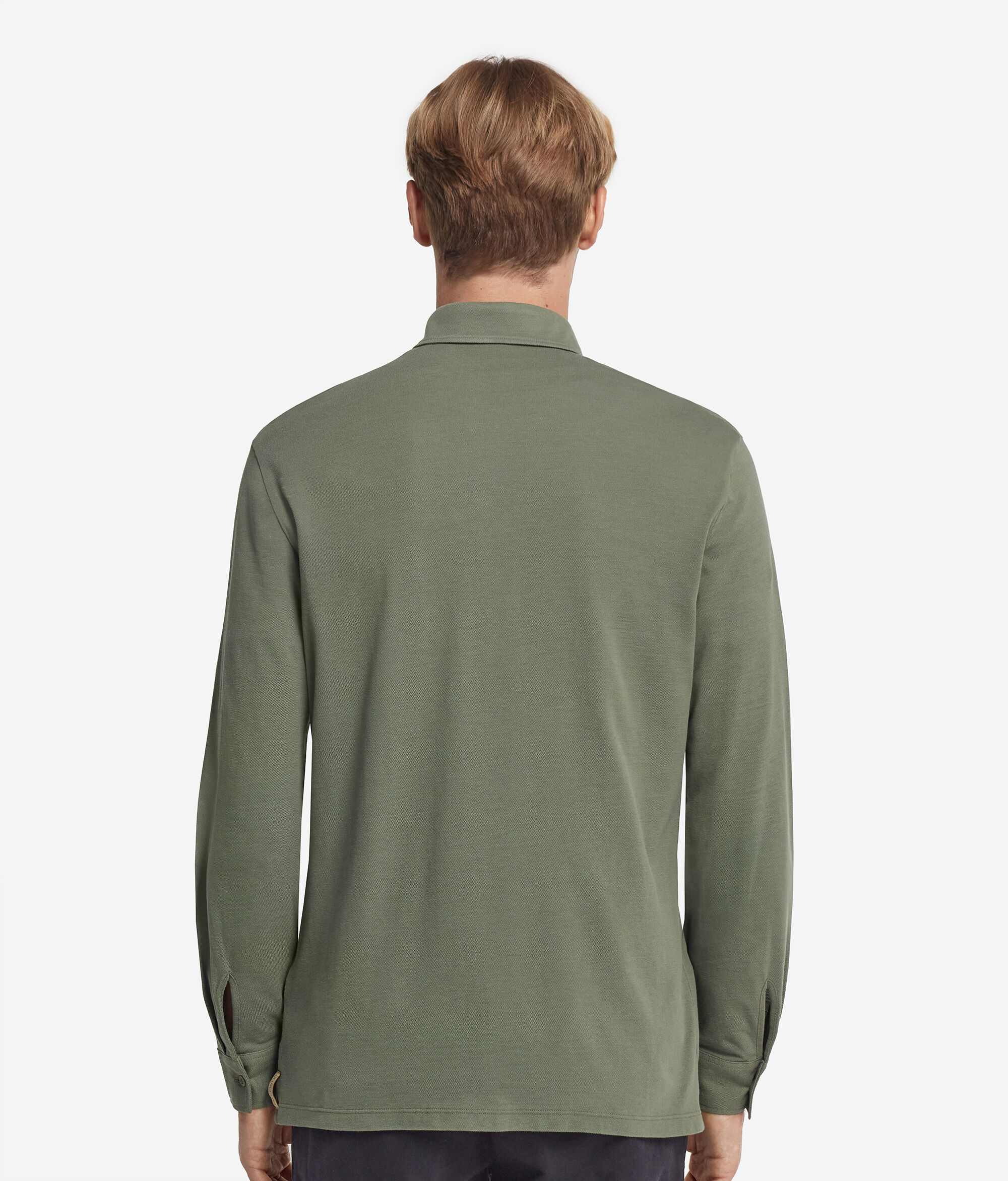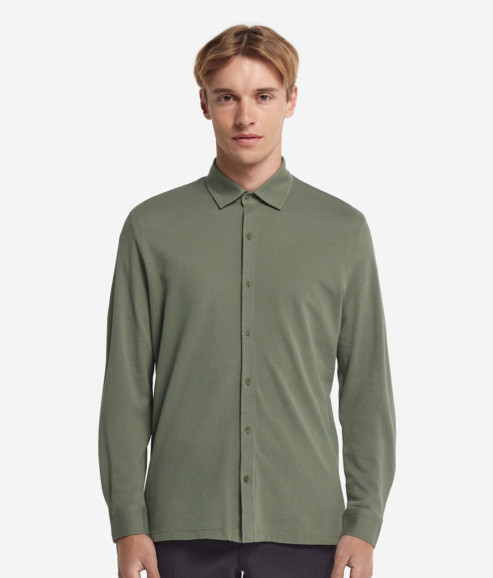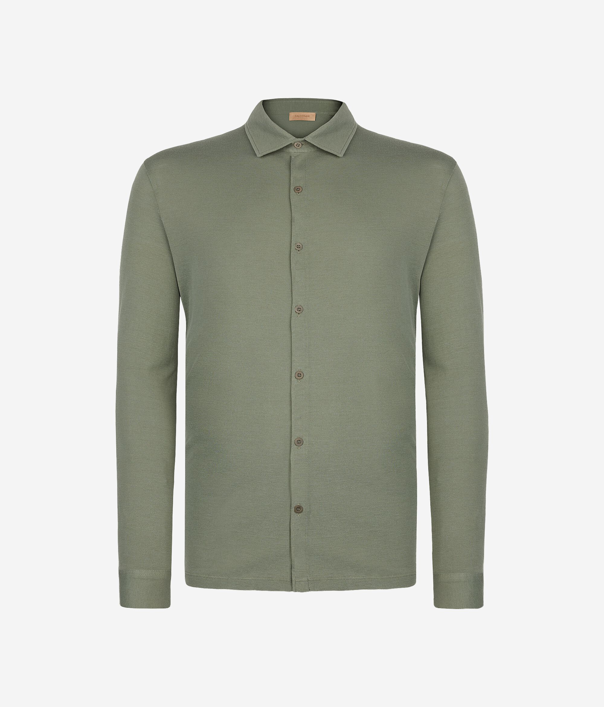 A meticulous selection of natural fibres enhances the silhouette of this shirt in lightweight cotton and silk piqué jersey. The simple design features a collar and central button fastening, adding a touch of timeless elegance. Perfect for those who like discreet elegance, it is a versatile garment that naturally suits both casual and more sophisticated looks.