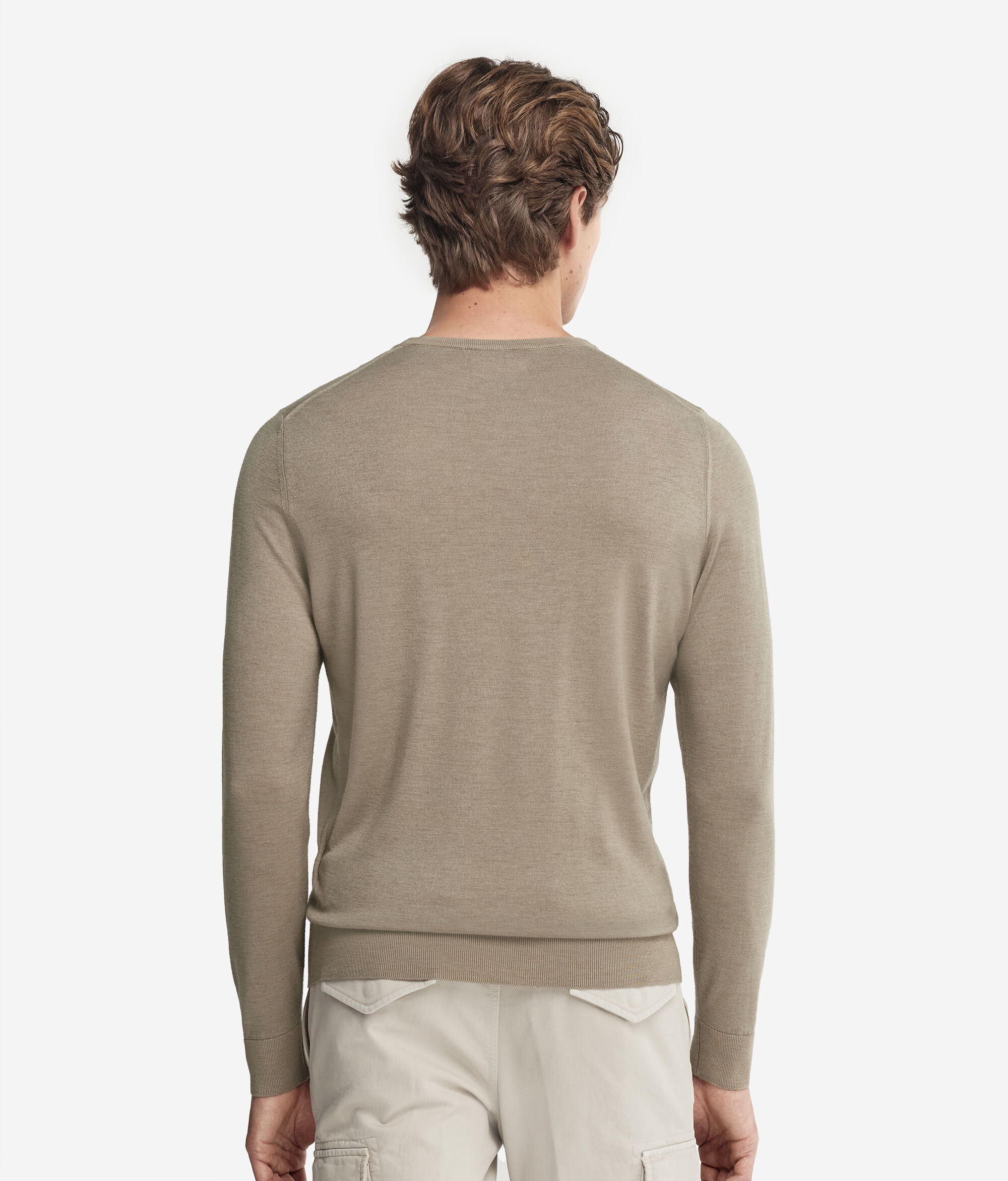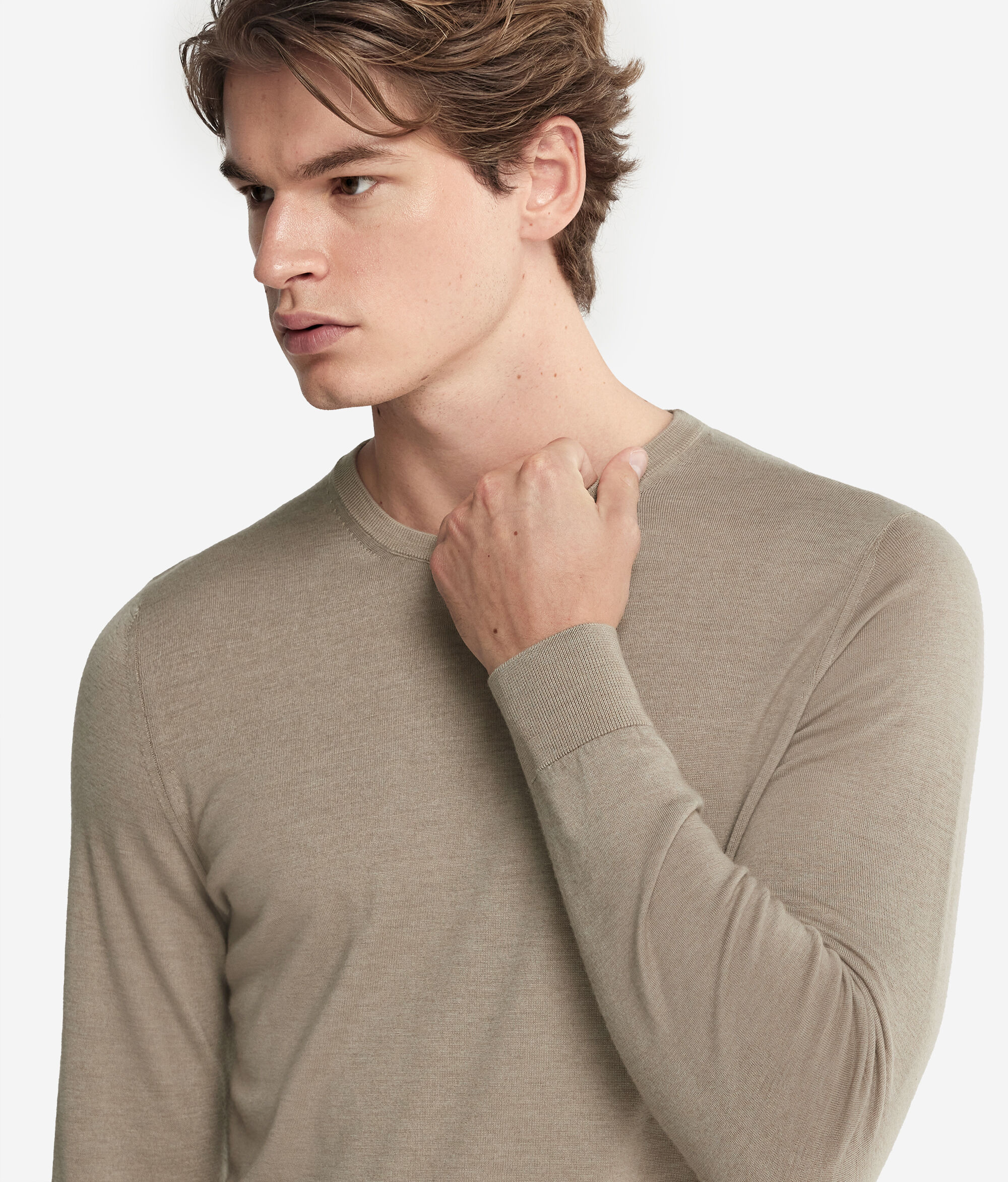 The natural ultrafine cashmere fibre enhances the timeless style of this crew neck sweater. Soft and exquisitely light on the skin, it offers a perfect balance between lightness and a warm embrace. Versatile and elegant, this is an essential garment in a man’s wardrobe, ideal to wear alone or under a jacket for a refined look on any occasion