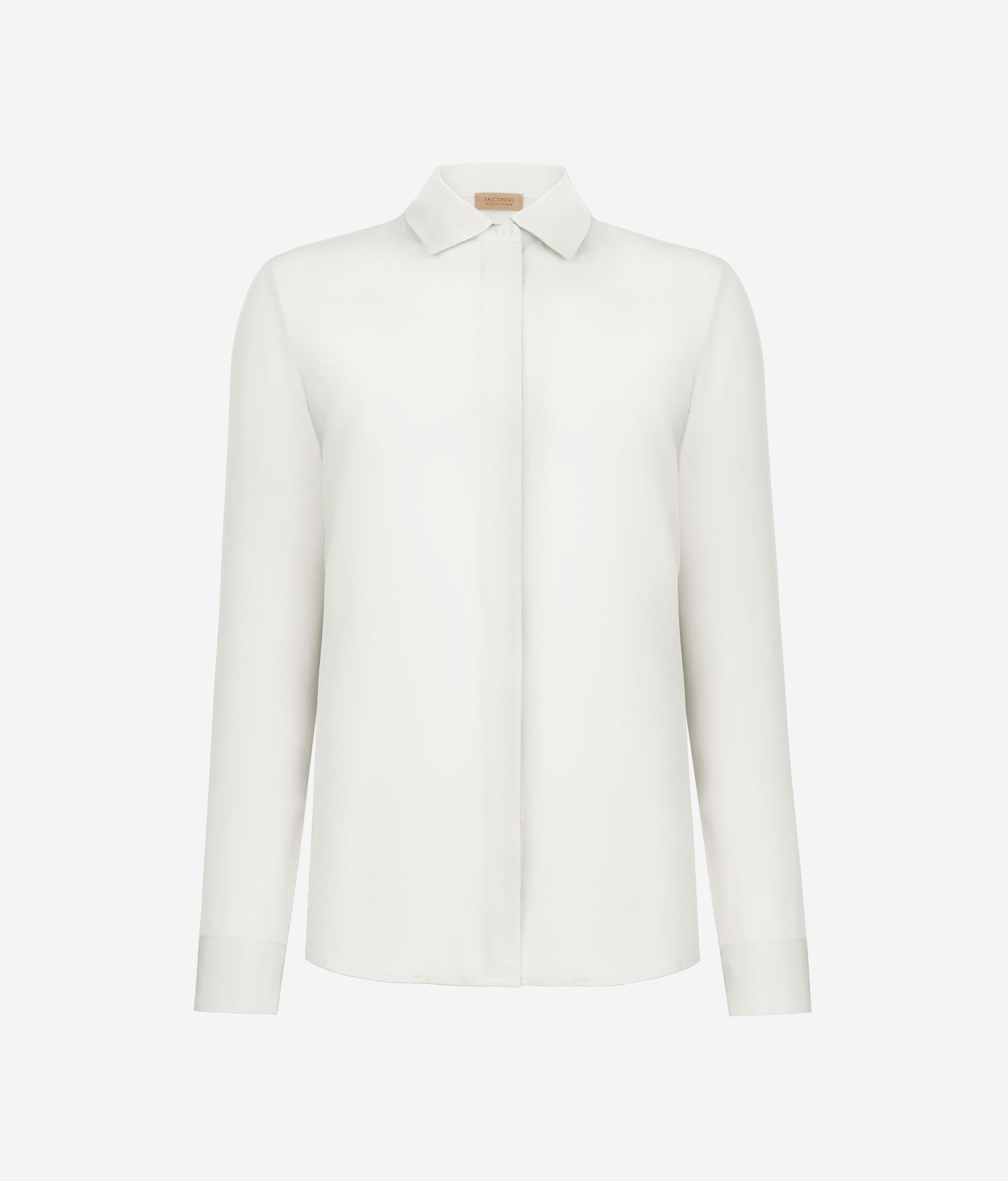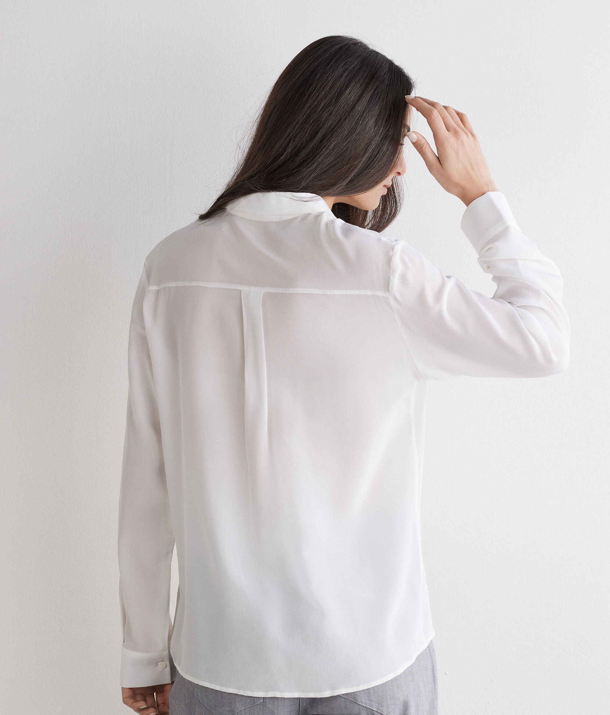 Discover the timeless elegance of this shirt crafted in crêpe de chine. With its clean and simple lines, the design is embellished with a classic collar and button fastening. Simple though distinctly sophisticated, it is a must-have piece in the wardrobe of those who love quality and style without compromise.