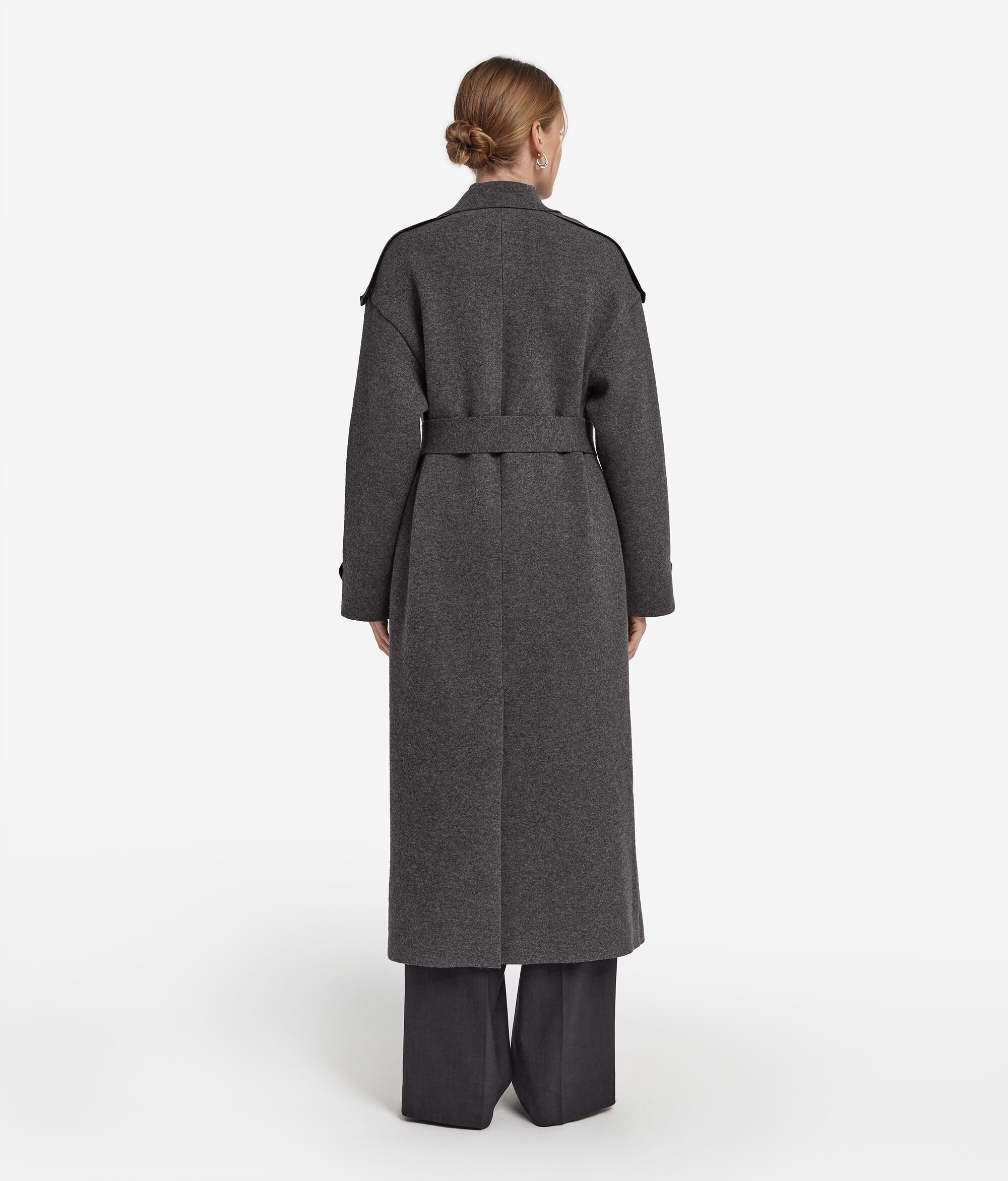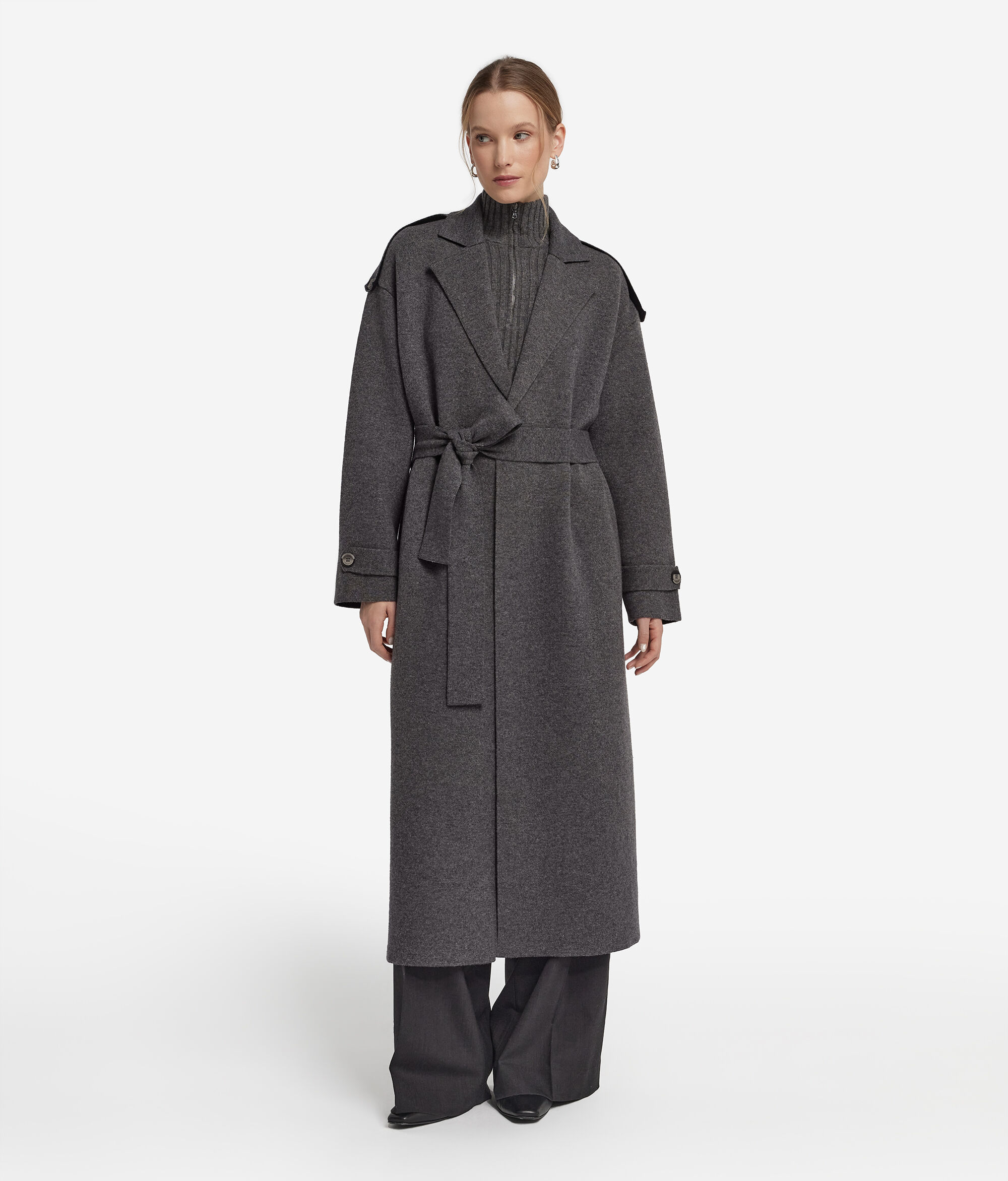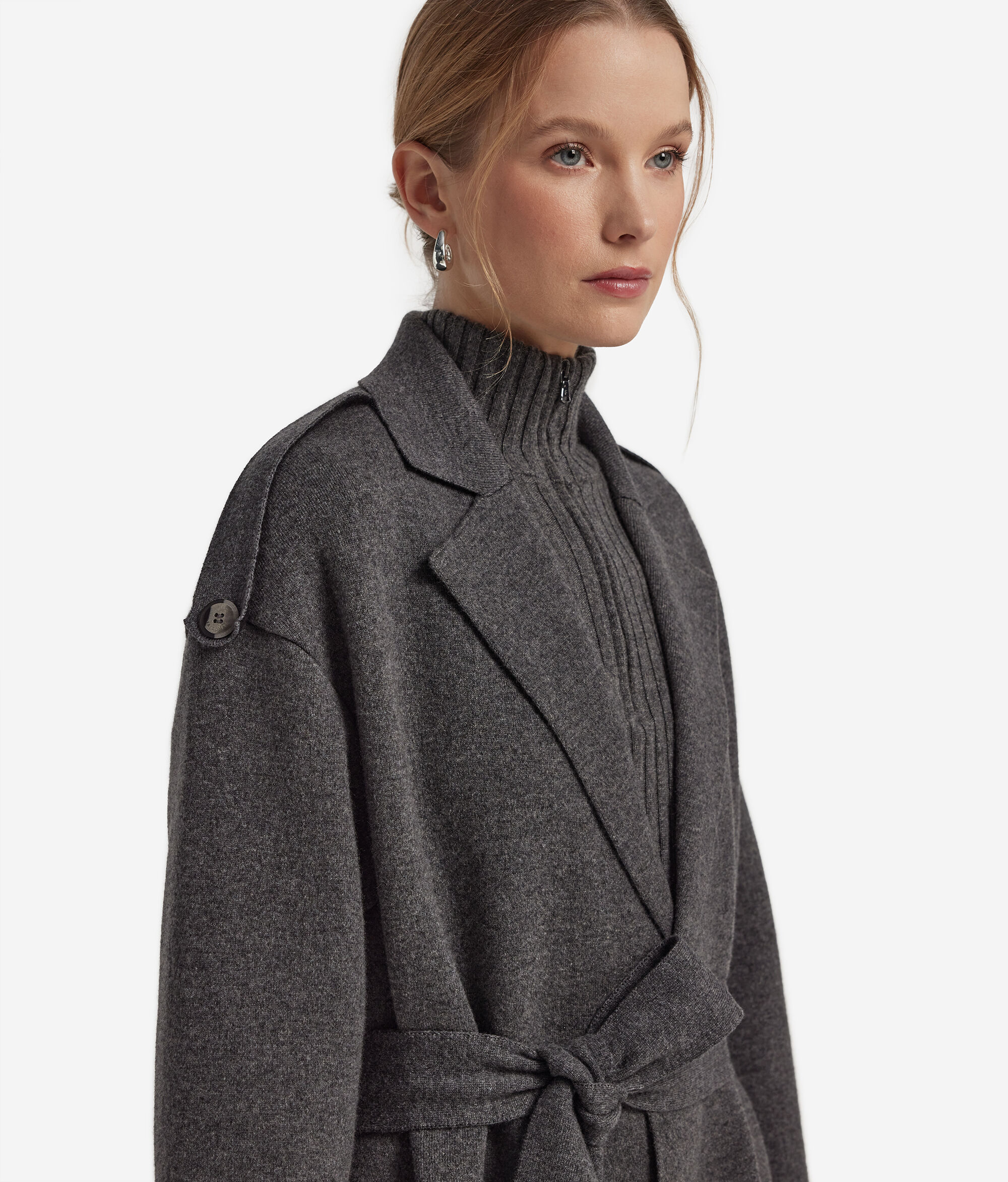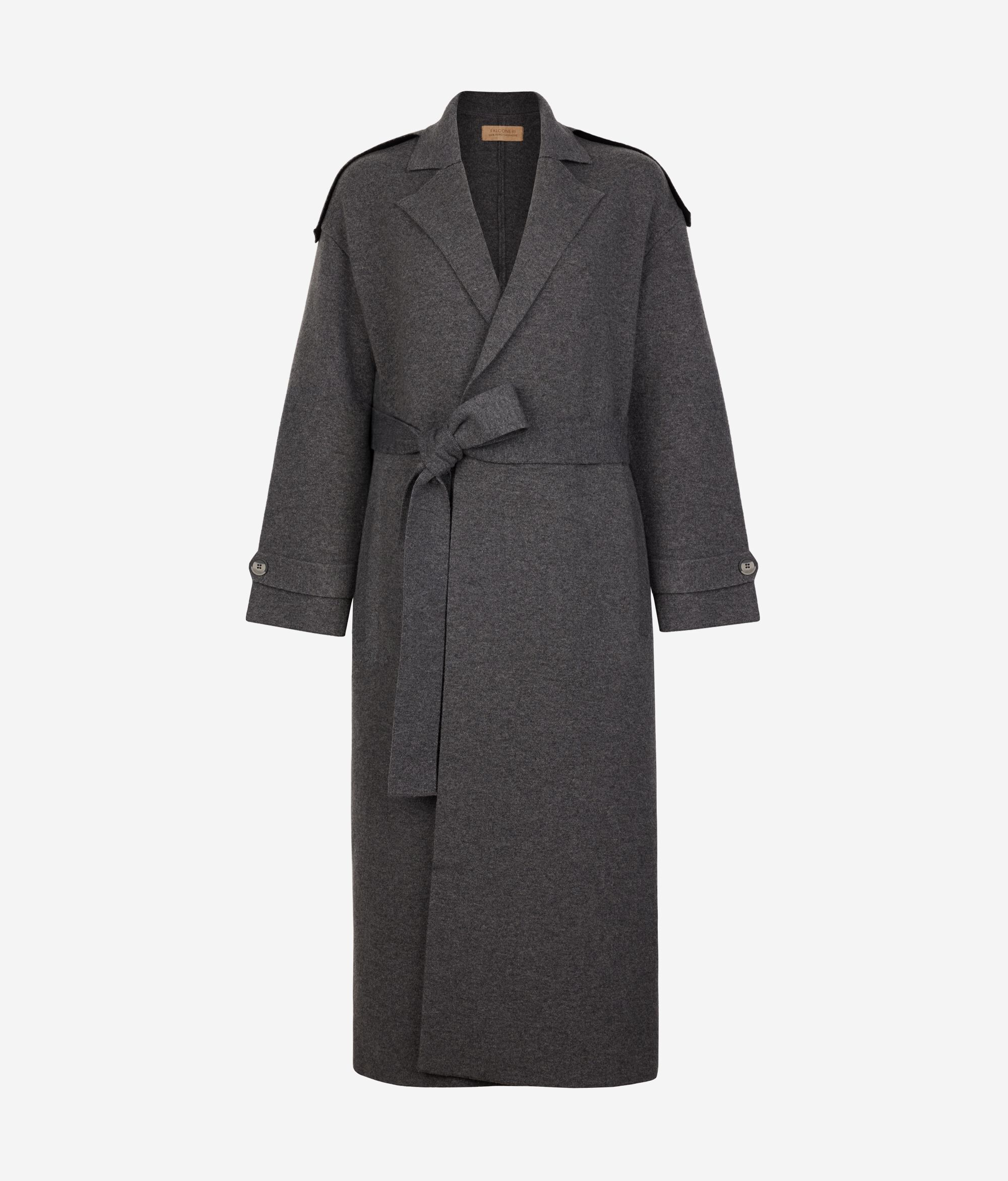 Created in fine Ultrasoft Cashmere, this coat combines comfort and style in a light and enveloping structure. The classic lapel is paired with a contrasting inner, while the knit belt naturally defines the silhouette. The dropped shoulders, with buttoned tabs which are also on the cuffs, add a tailored detail. Applied pockets and an ankle length complete a garment with modern and authentic elegance.