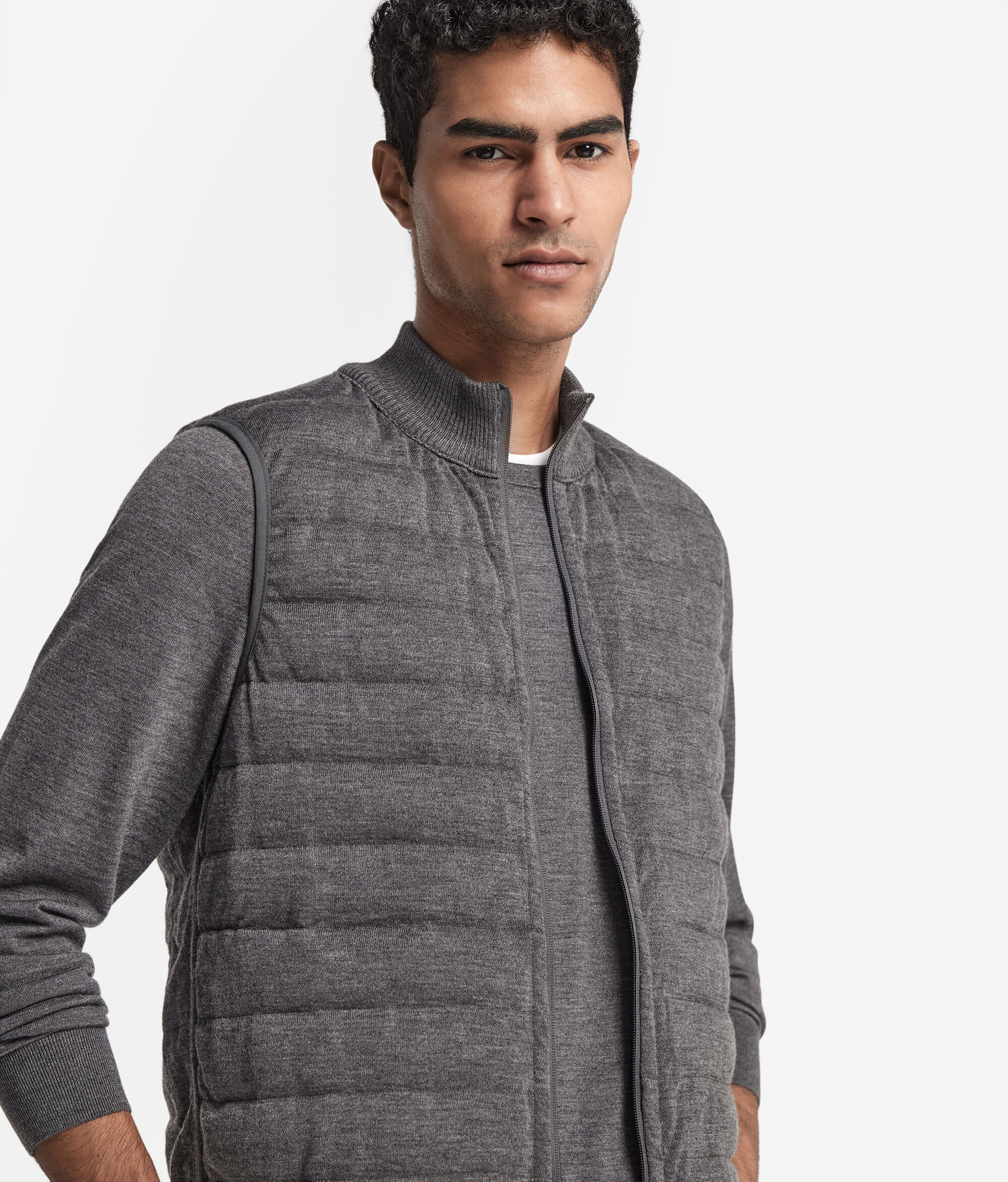 Falconeri dolgulu şişme yeleğin erkekler için kullanışlı ve eşsiz yeni modelini sunar. Yüksek kaliteli ultrafine cashmere'in eklenmesiyle spor stili daha da zenginleşen yelek, işlevselliği ve şıklığı mükemmel bir şekilde birleştirir. Çift taraflı olması sayesinde giymek istediğiniz stili her zaman seçebilirsiniz. Geçiş mevsimi için ideal olan bu ürün tüm kombinlerinize şık bir dokunuş katacak!