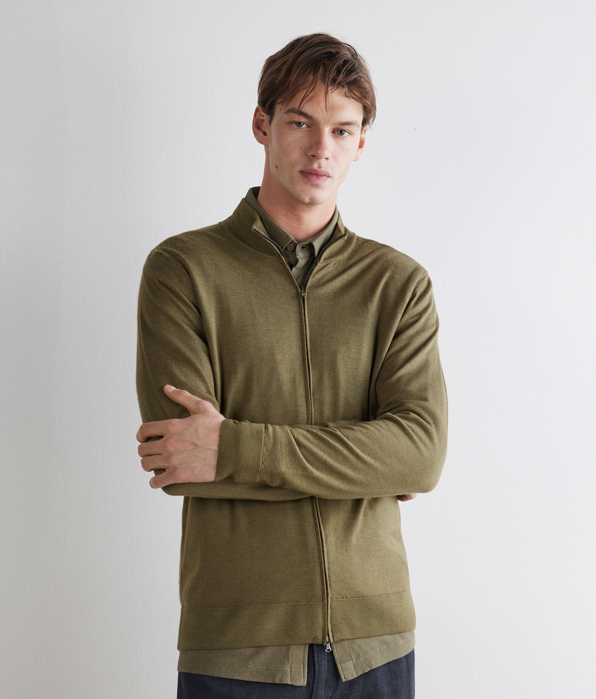 Seçkin ve sade bir tasarıma sahip olan bu kaşmir hırka, zarafet ile işlevselliği bir araya getirir. Değerli ipliğin yumuşaklığına, modern ve rahat bir hava katan pratik fermuarlı kapatma eşlik eder. Her görünümü mükemmel şekilde tamamlayan bu parça, boş zamanlardan daha resmi buluşmalara kadar her duruma doğal bir biçimde uyum sağlar.
