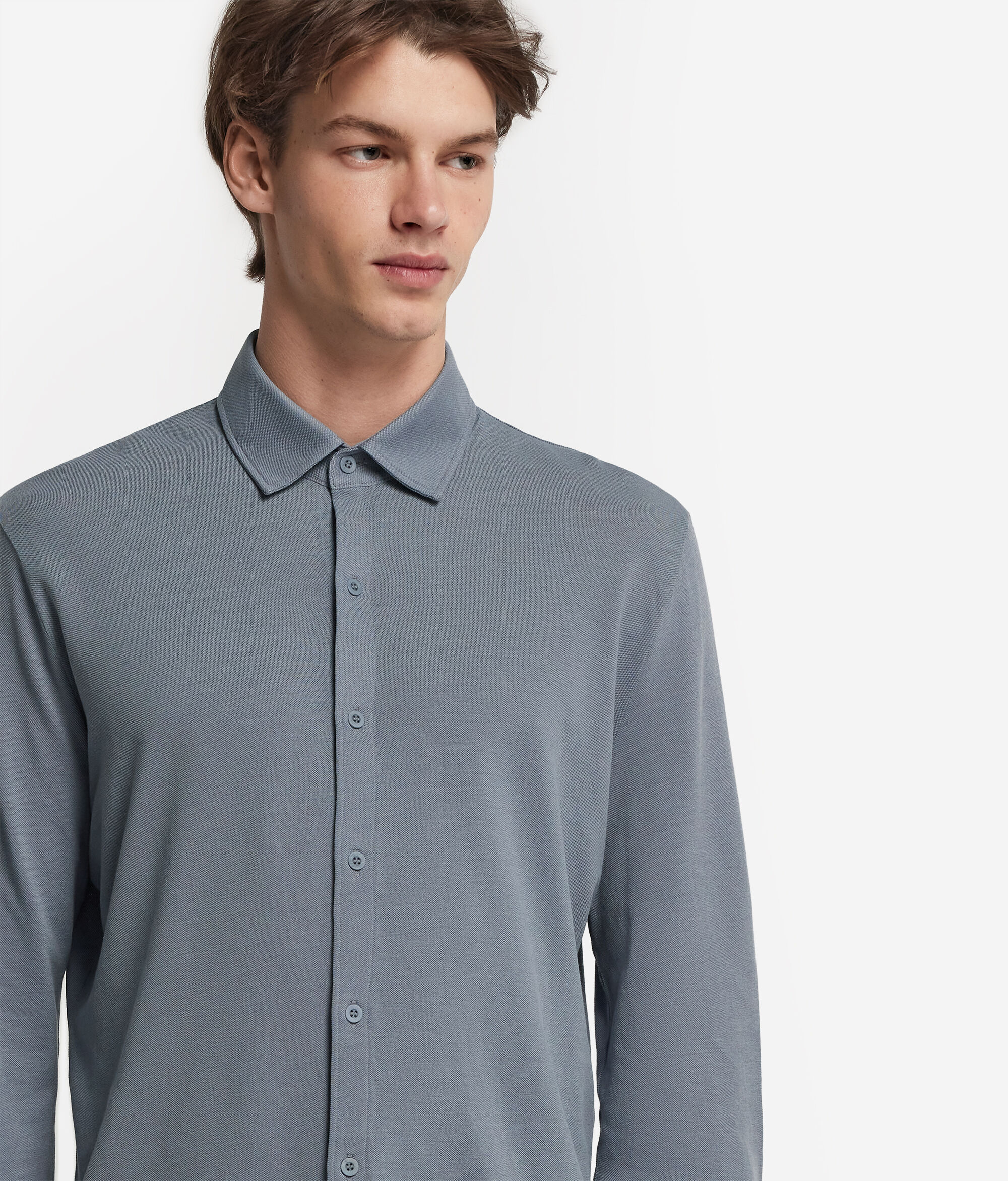 Pamuklu İpek Pike Uzun Kollu Gömlek