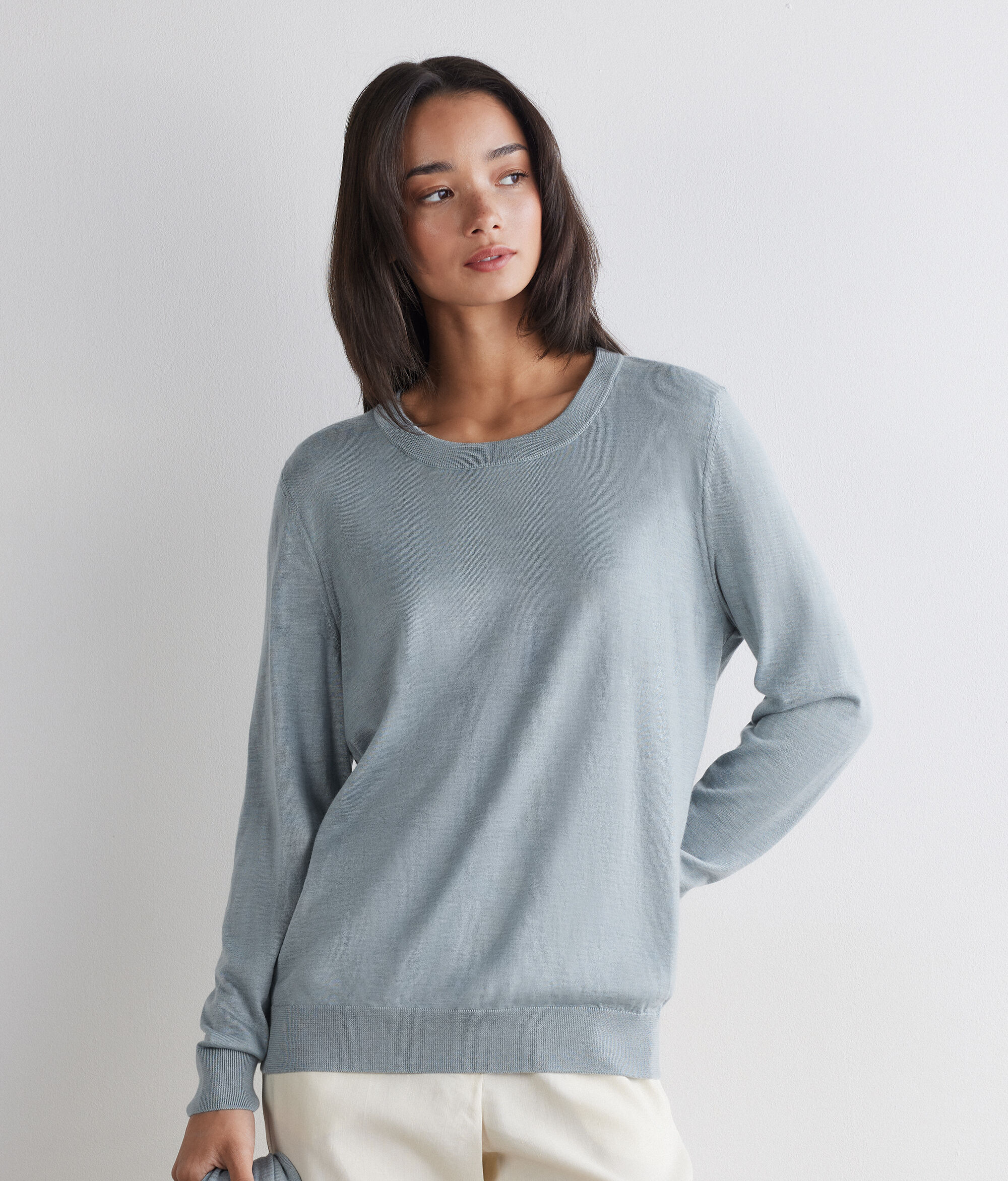 Bu lüks Ultrasoft Cashmere yuvarlak yaka kazakla gardırobunuza lüks ve konfor ekleyin. Tasarımı zenginleştirmek için, parçanın sade stiline zarif bir görünüm katacak şekilde yakada, manşetlerde ve bel bitişinde ribana detayı uygulanmıştır. Serin günler için vazgeçilmez olacak bu parça hem iş hem de günlük kullanım için mükemmeldir.
