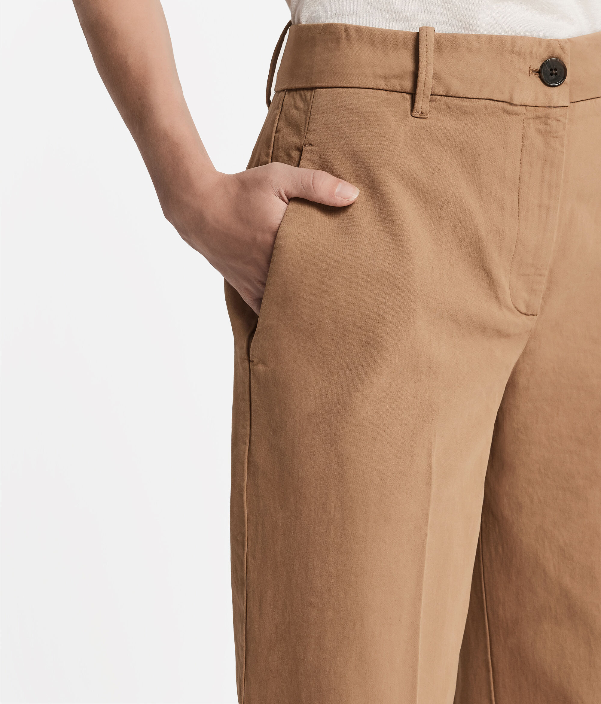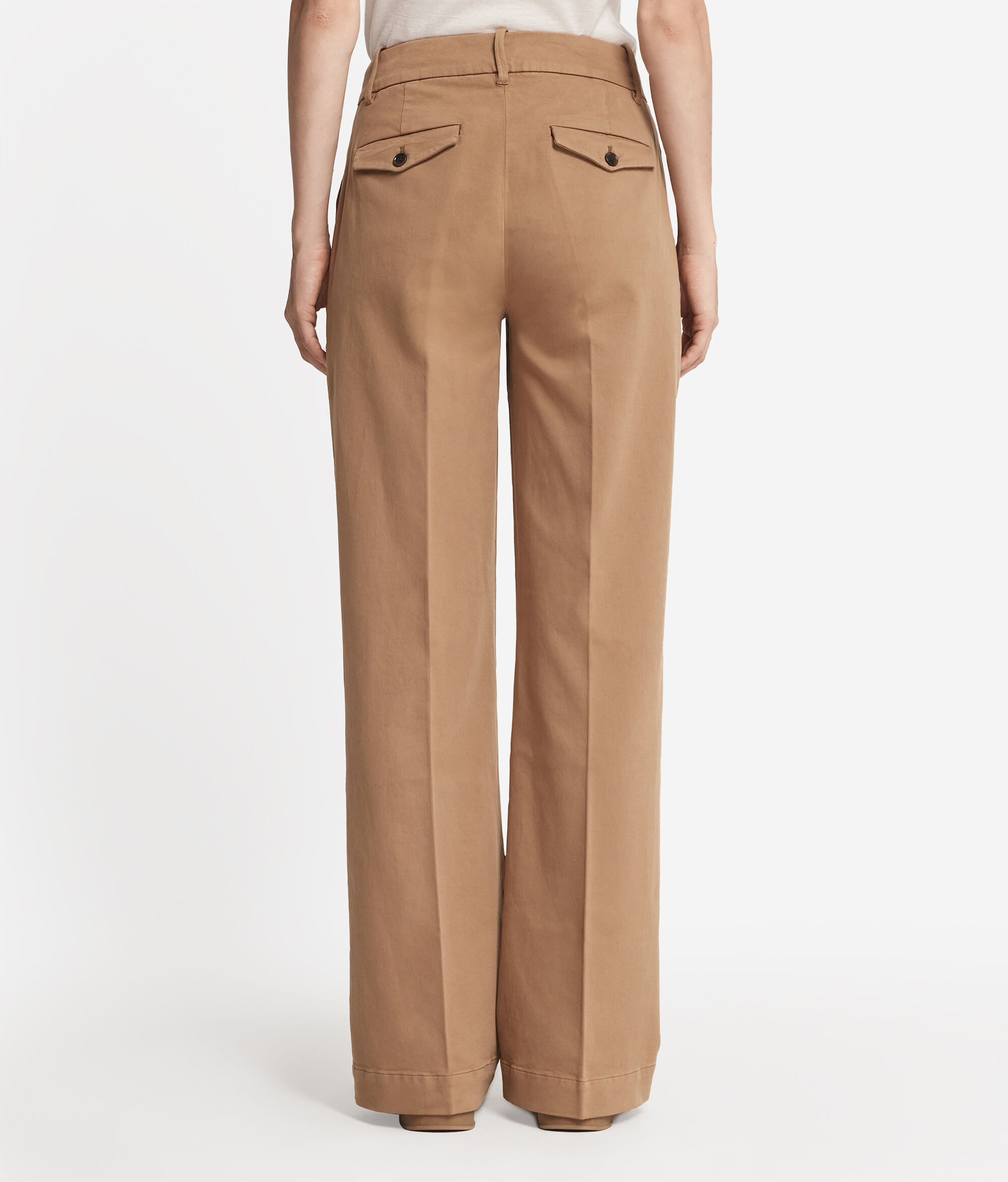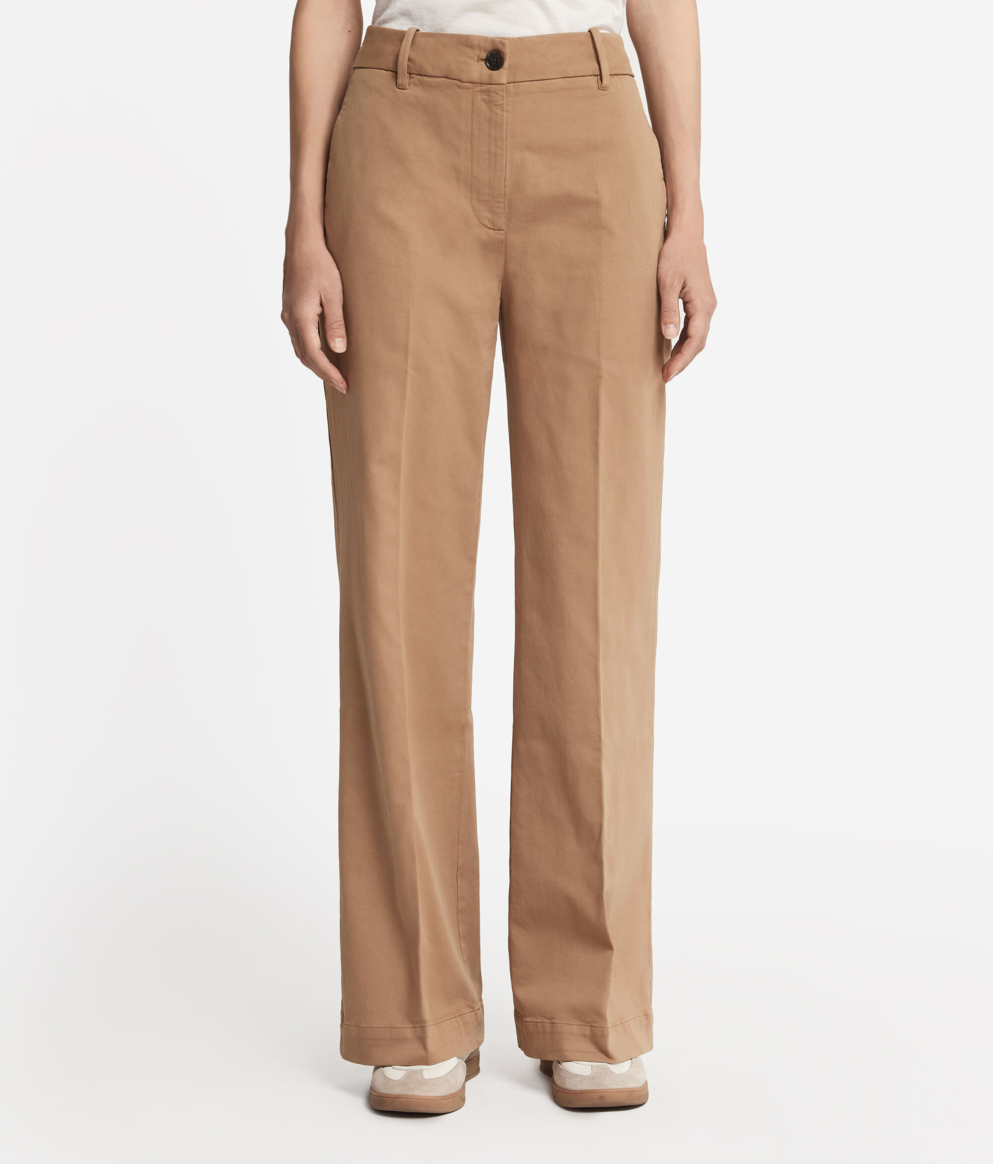 A relaxed fit meets classic details in these pure cotton palazzo trousers. The front zip-and-button fastening and practical side pockets lend a casual edge to the piece and are the starting point for the long, straight leg. The Regular Fit. We recommend sizing up one to two sizes for the best fit and floor length combine comfort and style in one elegant, timeless design.