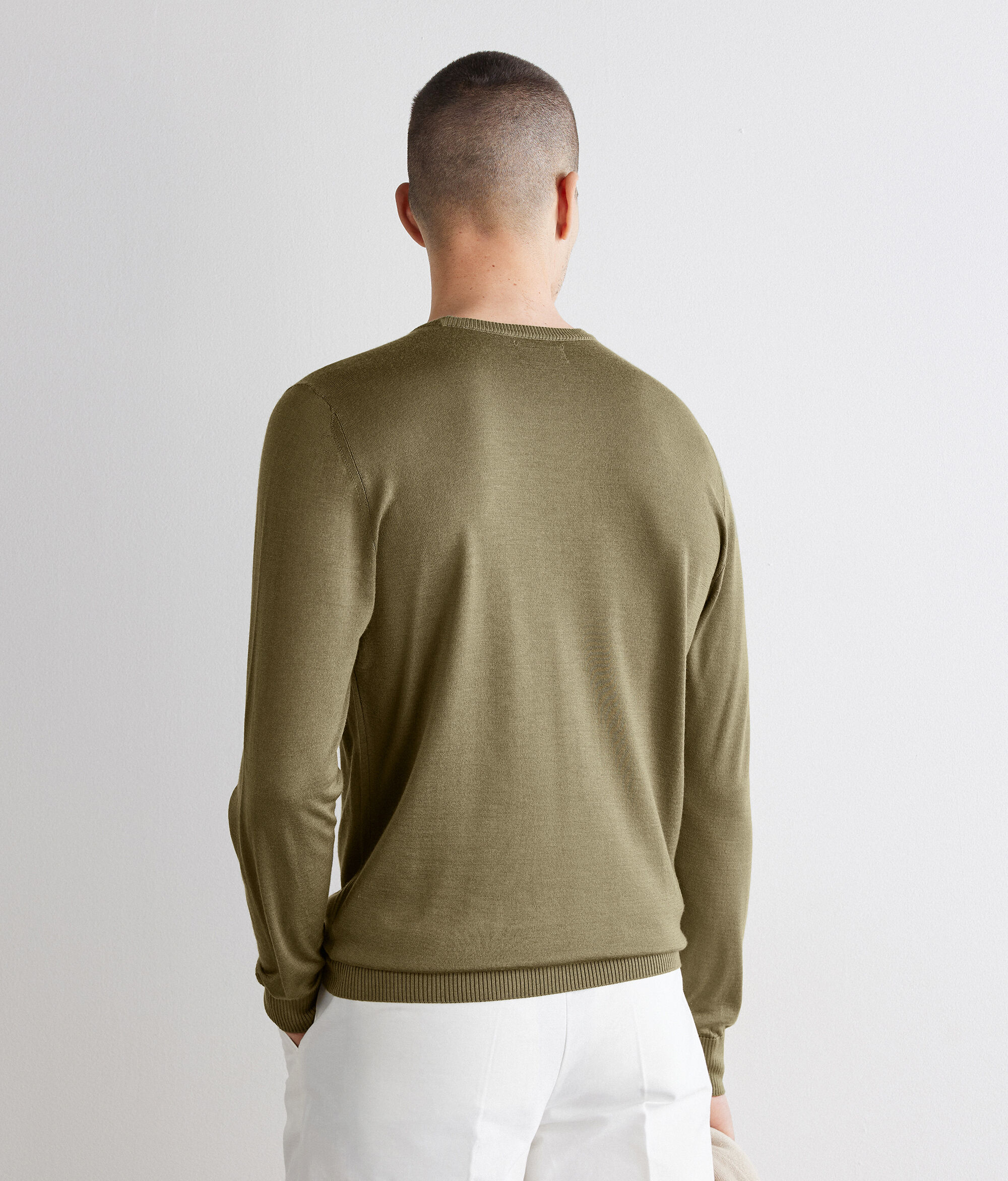 The weightless caress of cashmere blends with the natural luminosity of silk in this crewneck with essential charm. The clean design finds character in the narrow-ribbed weave on the cuffs, and hem, details that provide structure and character. With its Regular Fit. We recommend sizing up one to two sizes for the best fit, this garment delicately follows the body’s lines, offering versatile elegance, perfect for both day and evening wear.