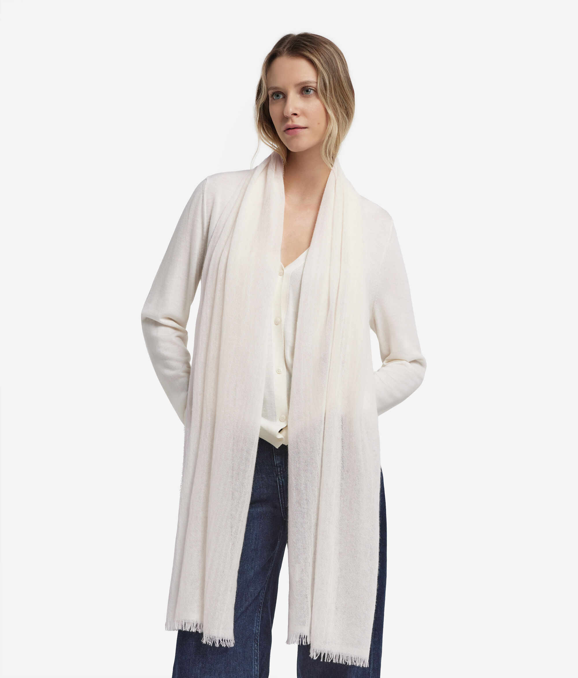 This scarf, crafted in soft Ultrafine Cashmere, is the perfect accessory for adding an elegant touch of style to your looks. Lightweight but incredibly warm, it gently envelops the neck, providing protection on colder days.