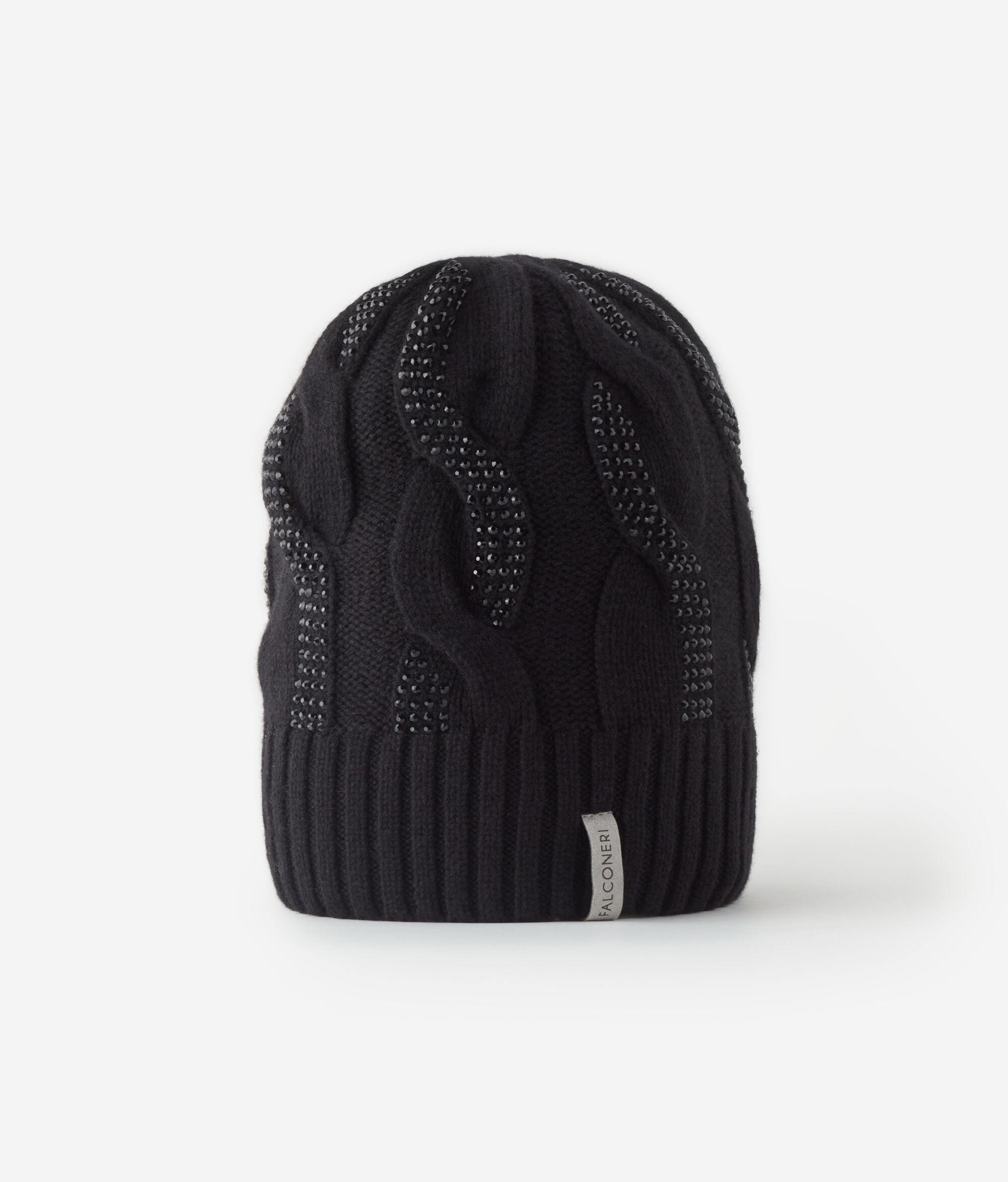 Ultrasoft Cashmere hat with cable knit and rhinestones