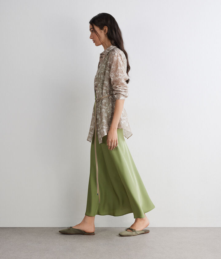 Matte satin skirt£250.00Select your colourBasilLIGHT MOTHER-OF-PEARL GREYRosé darkSelected color: Basil