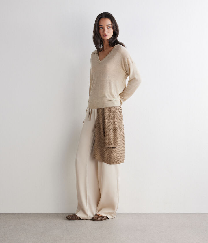 Cashmere and silk double V-neck sweater£200.00Select your colourStoneWhiteNero+ 4Selected color: Stone