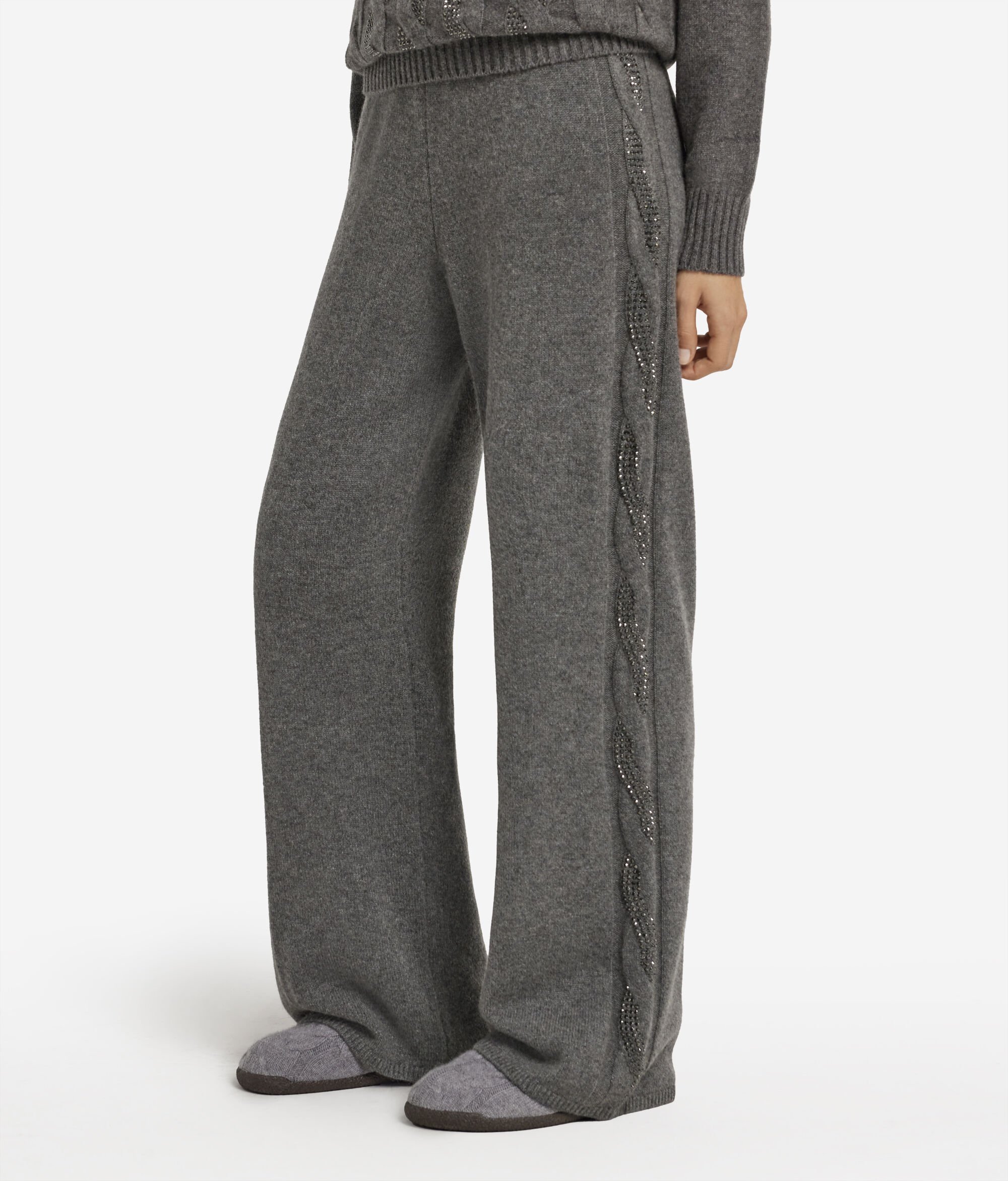 Ultrasoft Cashmere palazzo trousers with cable knit and rhinestones