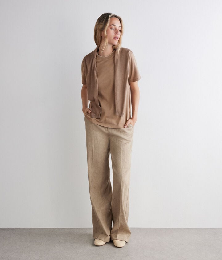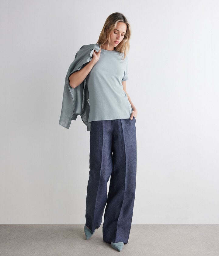 Discover our smart t-shirts for ladies, featuring an exquisite palette of colours designed to elevate all your attires. If you prefer more neutral tones, have a look at our elegant t-shirts in shades of black, grey, white and natural ecru. For a more vibrant and bold option, browse our selection of women’s t-shirts in colours such as green, blue, green, pink, orange and violet and select your favourite to bring a touch of Italian elegance to your wardrobe.
