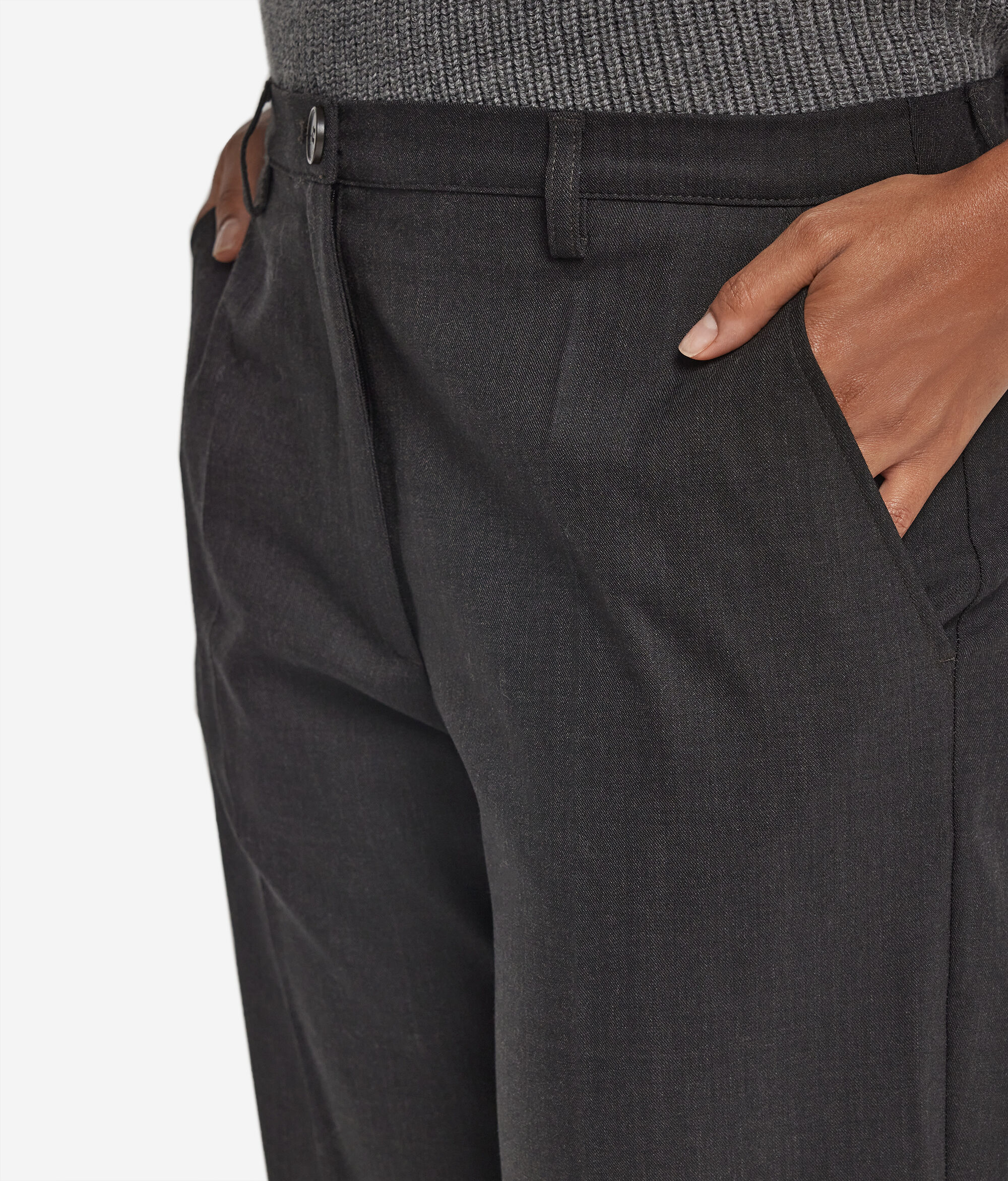 Crafted from smooth wool, these slim fit pants define the leg with a precise, contemporary line. The waistband with belt loops and zipper and button fastening ensure a clean, tailored line, while the slanted pockets add practicality while maintaining a balanced silhouette. Comfortable despite their slim fit, they stop at the ankle for a modern touch that enhances any type of footwear.