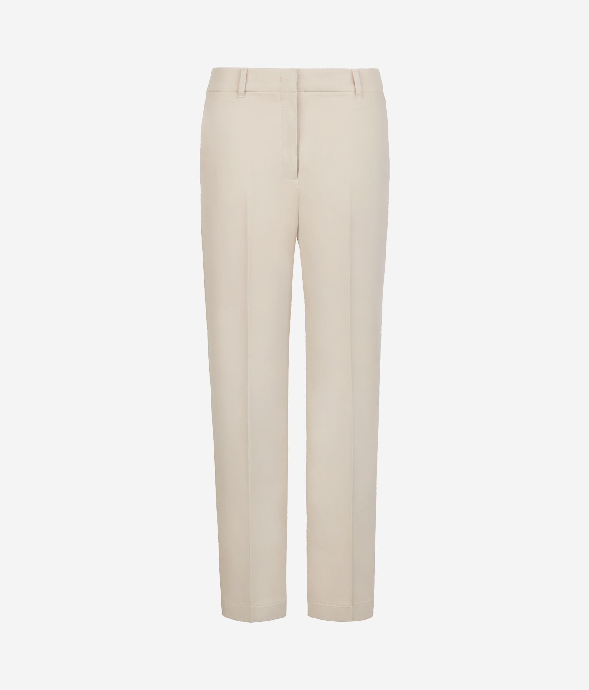Timeless elegance meets essential style in these cigarette pants. Distinguishing its minimal design is an elastic waistband at the back and a hook-and-zip closure at the front. Side pockets positioned on the hips add a sophisticated and distinctive detail. Slightly fitted lines define the Regular Fit. We recommend sizing up one to two sizes for the best fit and feminine flair of the piece.