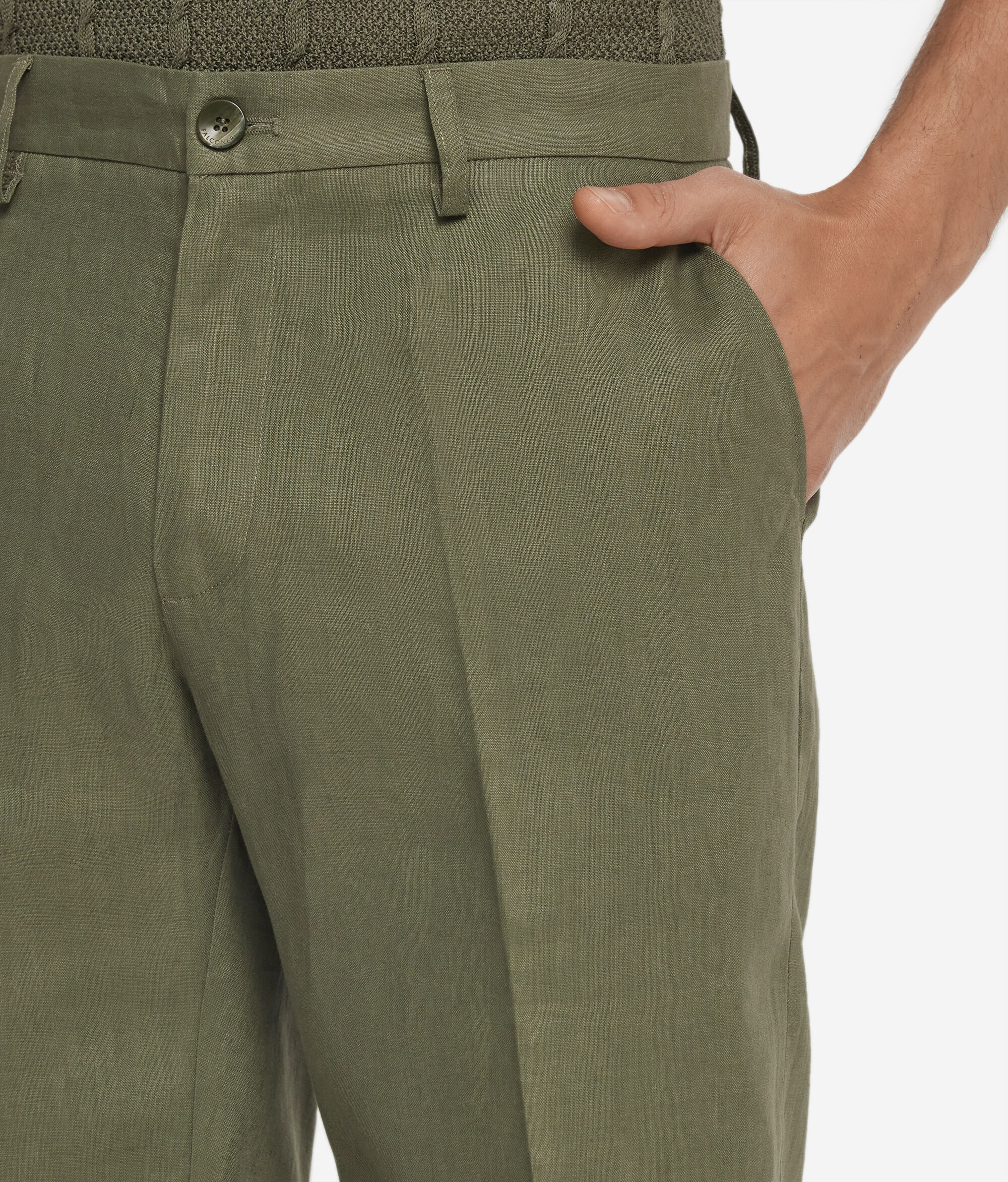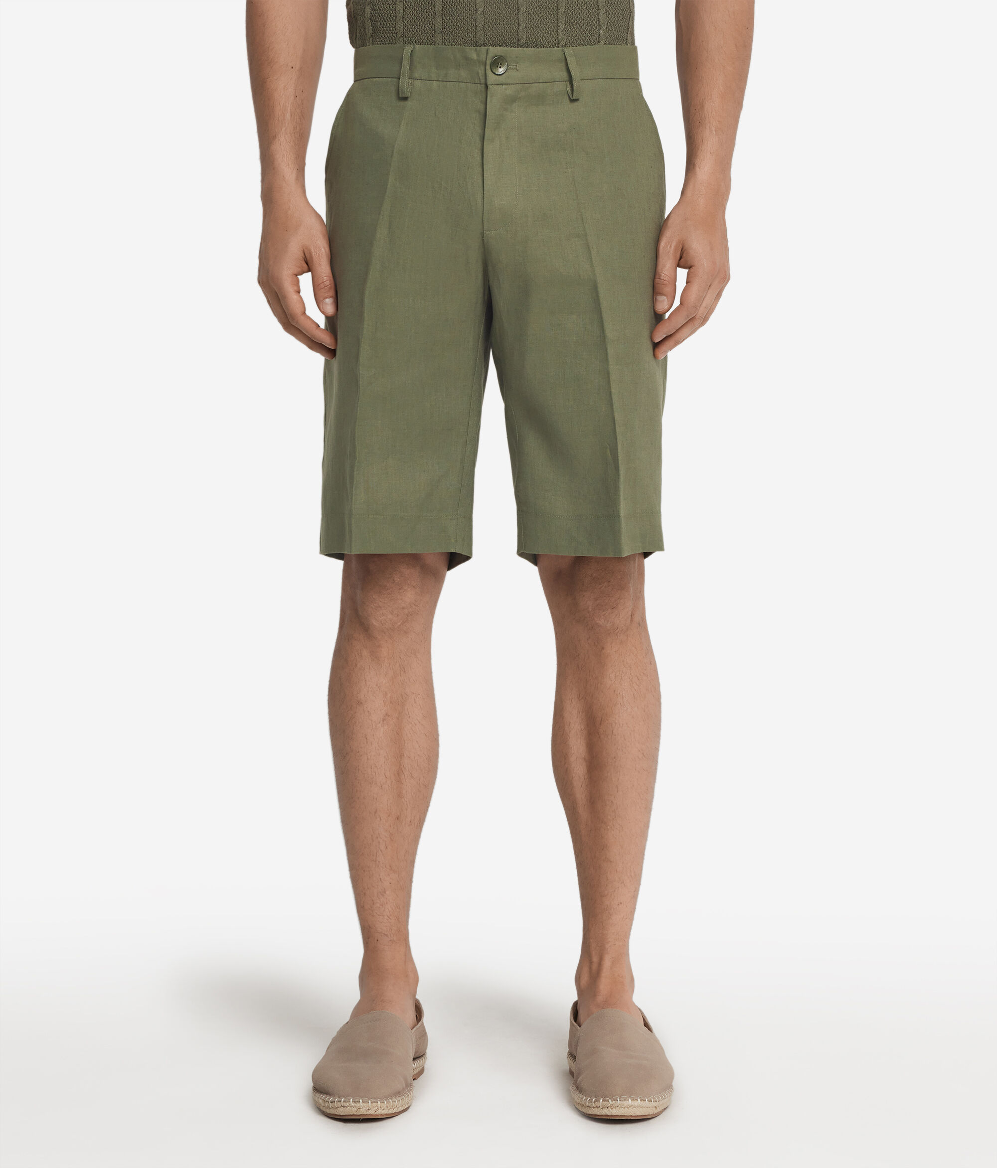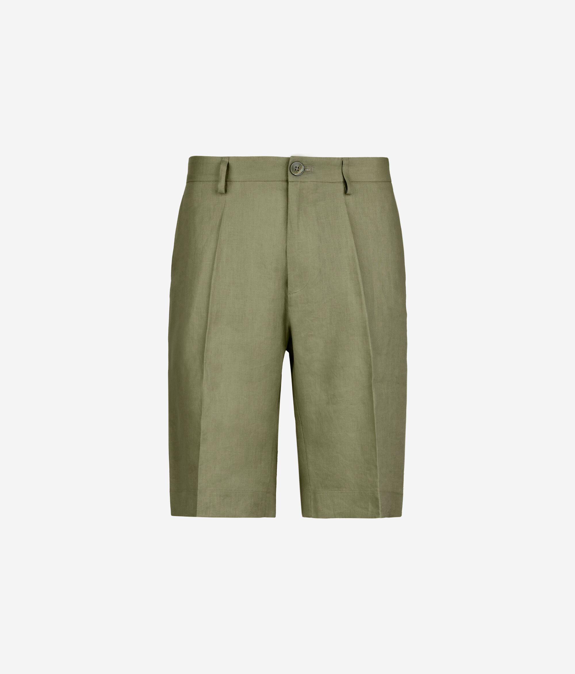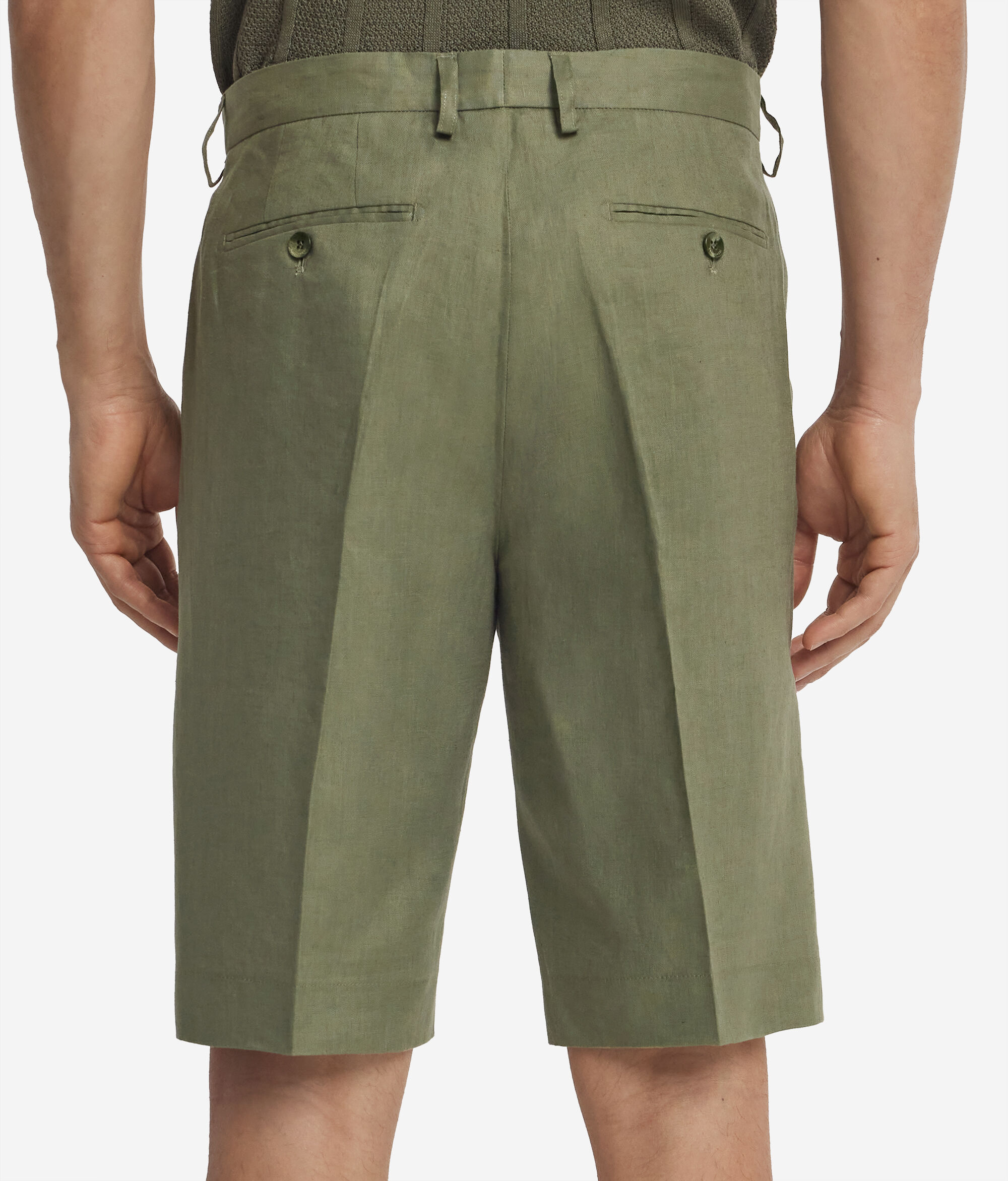 Made of cool linen fabric, these above the knee pants elegantly combine elegance, simplicity and sophistication. French pockets on the hip and welt pockets on the back provide the design with an accent of sophisticated practicality. With a Regular Fit. We recommend sizing up one to two sizes for the best fit, the piece offers the perfect balance of freedom of movement and style, ideal for warmer days.