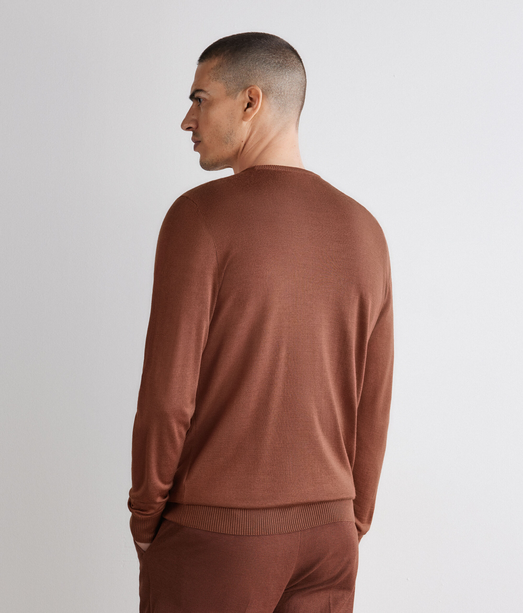 The impalpable caress of cashmere blends with the natural shine of silk in this fascinating crewneck. The clean design features ribbing on the neckline, cuffs and hem, details that lend structure and character. With a Regular Fit. We recommend sizing up one to two sizes for the best fit, the piece gently follows the contours of the body for versatile elegance, perfect for both day and evening wear.