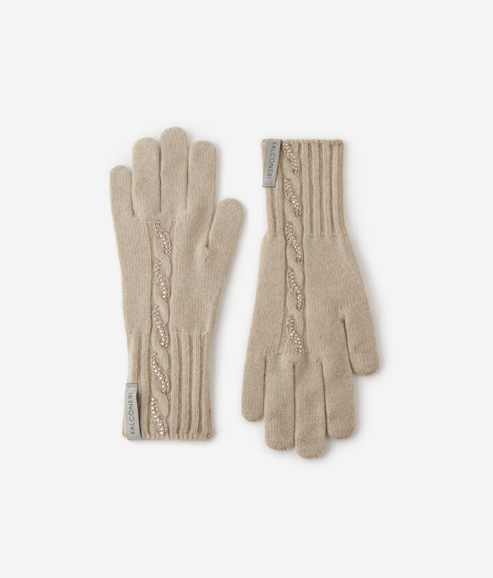 Ultrasoft Cashmere Cable Knit and Rhinestone Gloves